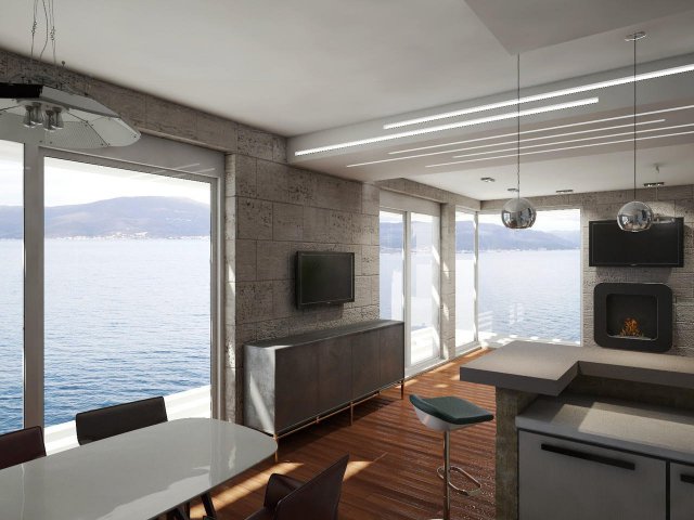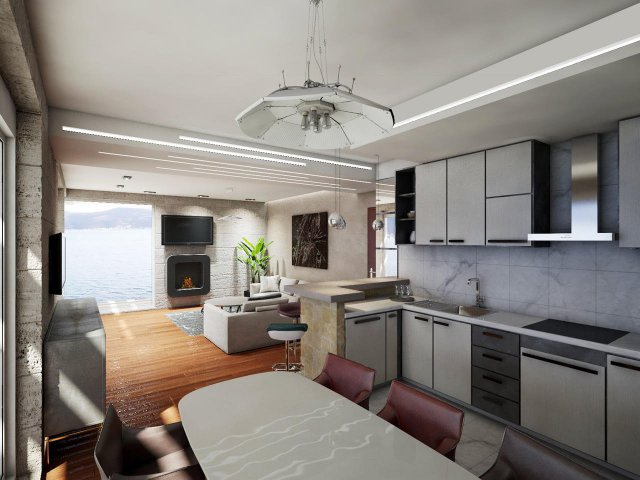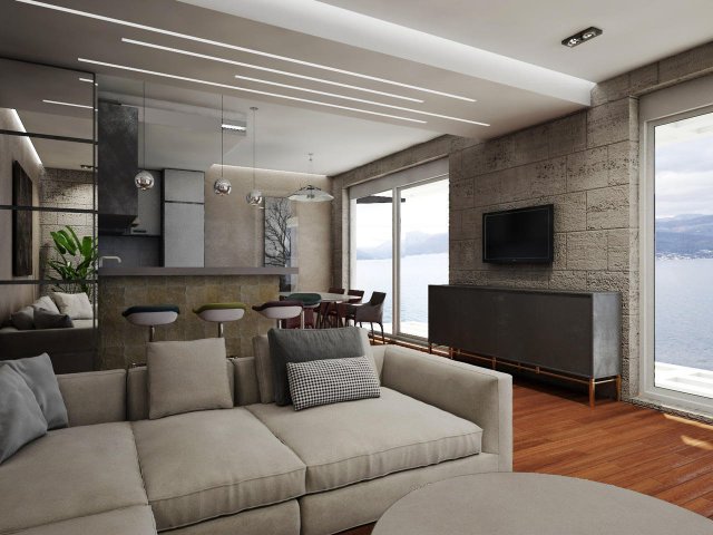 1st level – It’s located on the lower terrace and has access to the sea. This floor is offered in a free layout, finishing is included in the price. A buyer chooses the layout. Alternatively, there can be 2 or 3 bedrooms /gym/sauna/Spa/recreation room or any other room. All windows and terraces offer beautiful sea and mountains views.