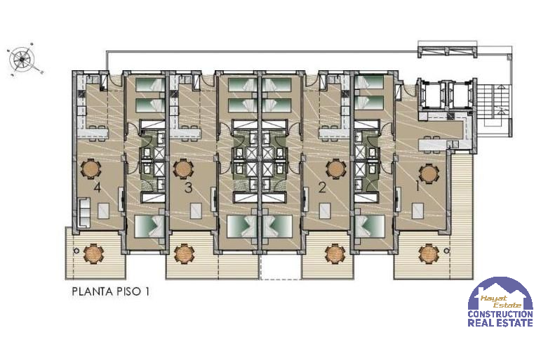 Апартаменты с 2 спальнями + 2 ванные комнаты, большой гостиной с выходом на террасу, кухней открытого типа