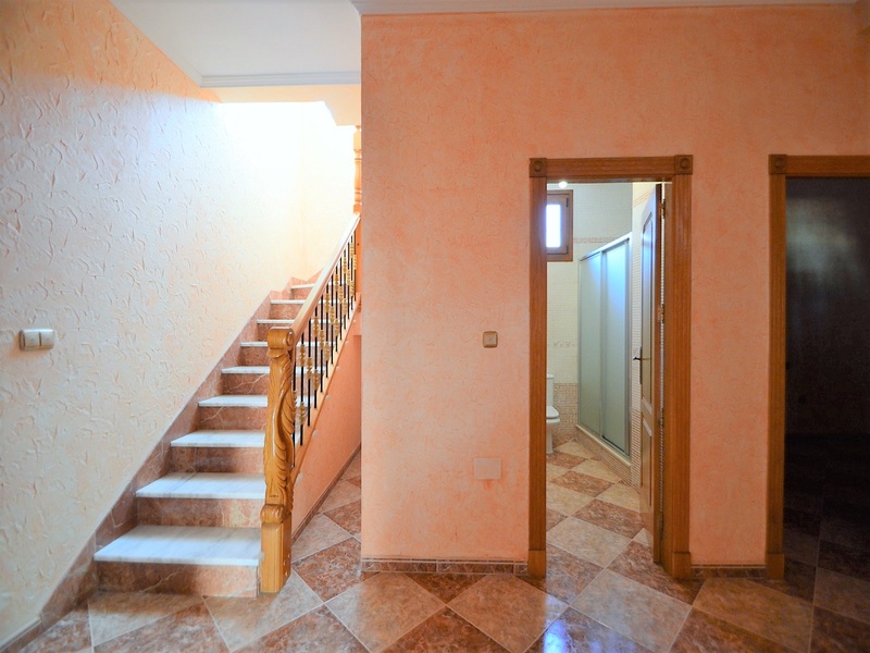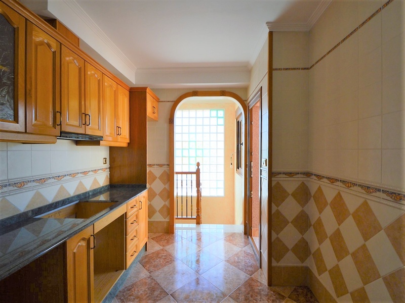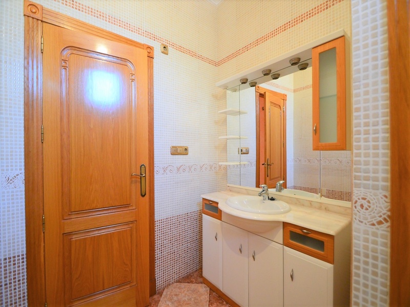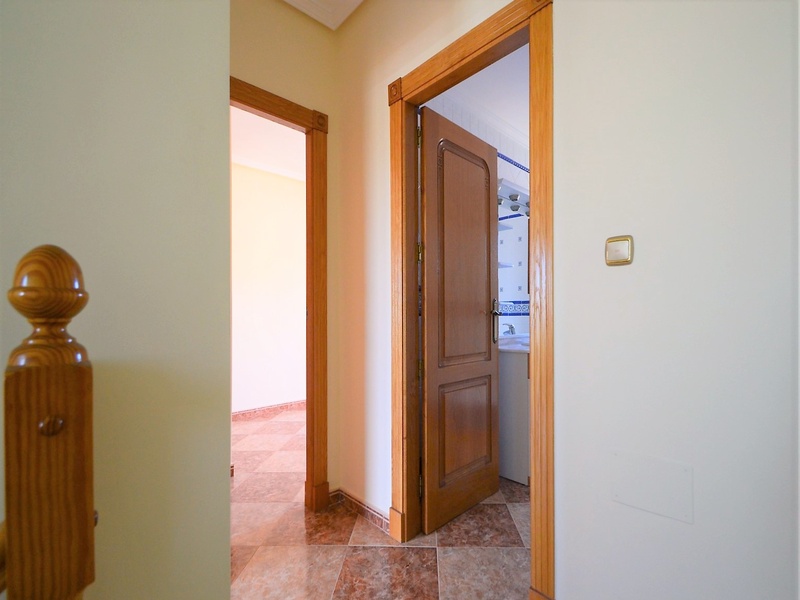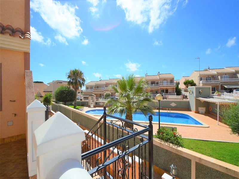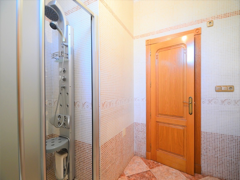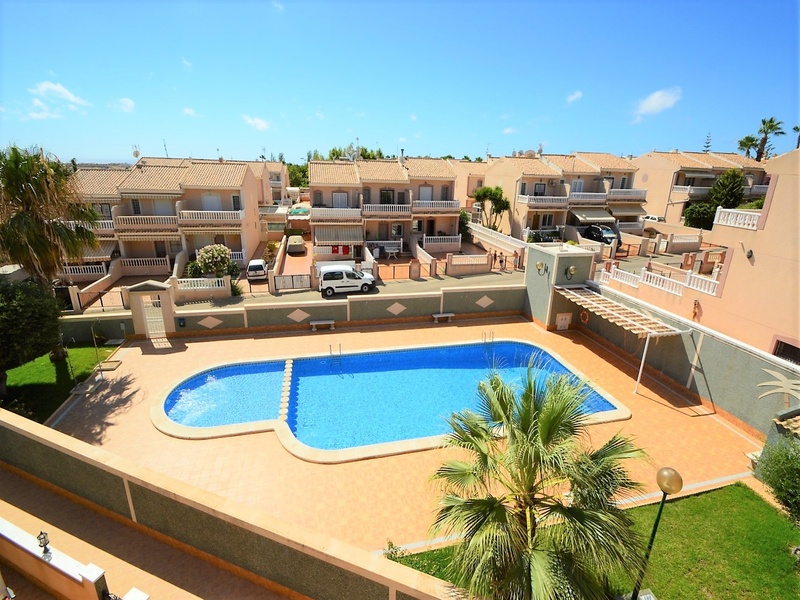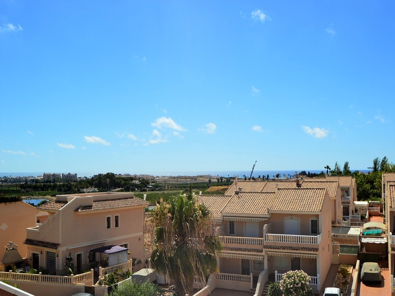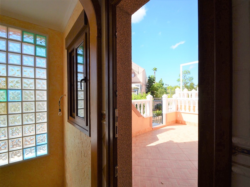Semi-detached duplex with a built surface area of 162 square meters, divided between a large living room, a separate kitchen, 2 bedrooms, 3 bathrooms, 1 room and a garage on the basement floor, a porch, a behind terrace overlooking the community swimming pool and a large private solarium on the roof of the house. The property has a pre-installation of air conditioning and central heating, built-in wardrobes, fully furnished and equipped with white goods kitchen and bathrooms. In addition, a package of furniture (which is possible to modify according to the tastes and needs of the buyer) is included in the price of the property. The house is located on a plot of 140 square meters and is located on a dead-end street. Within 10 minutes driving to the city of Torrevieja and the best beaches in this area. Within walking distance to several supermarkets, restaurants, pharmacies, Torrevieja’s main hospital, a public school and various recreation areas. It is a central model of the block of three attached houses. The photos correspond to the lateral model of the same block.