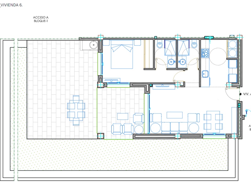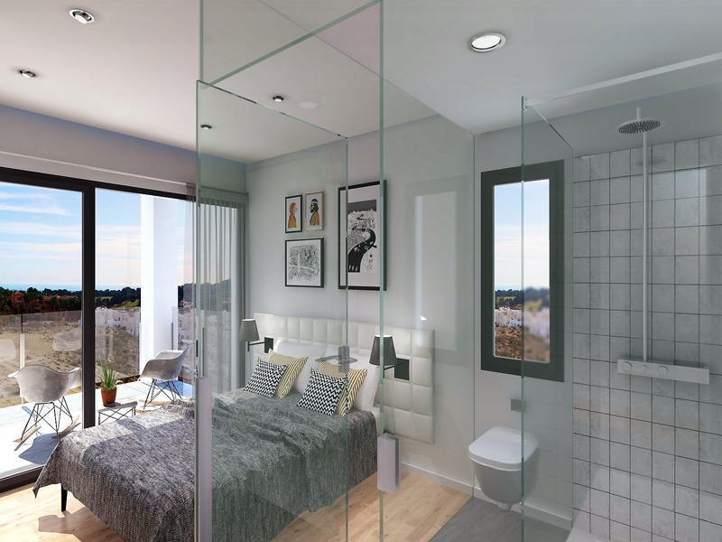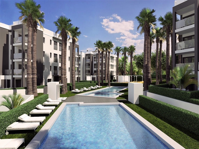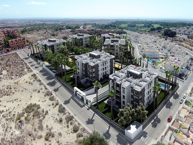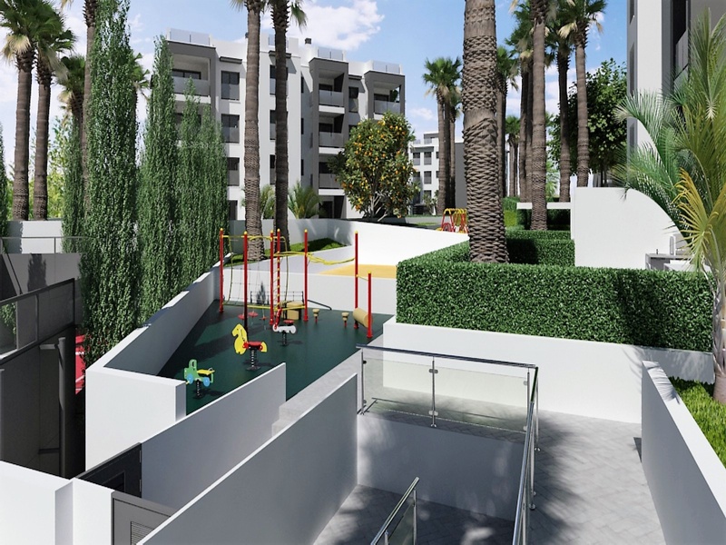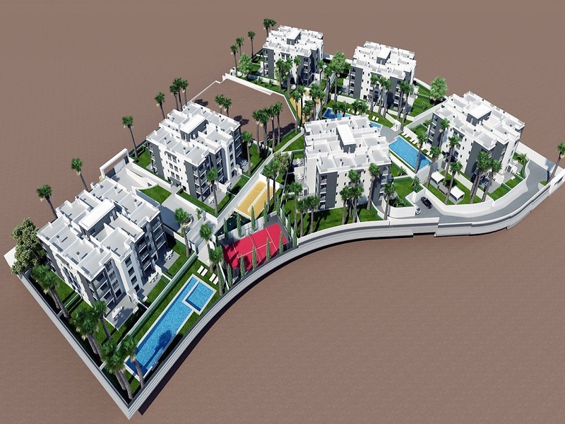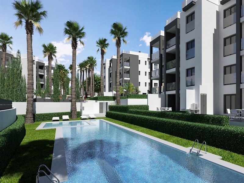 The last available apartment on the ground floor in the Block I of the new project in 200 meters from the Villa Martin golf courses. The apartment consists of 1 bedroom, 2 bathrooms, a living room with an open kitchen, a terrace and a private garden with a surface area of 109.25 square meters. High quality construction and finishing materials, and comfort in everything: aluminum windows and shutters, fully furnished and equipped kitchen and bathrooms, heated floors in the bathrooms, a heat pump, built-in wardrobes, a parking spaces, etc. The house is part of a gated community with 6 blocks of apartments. The complex will dispose of large gardens, swimming pools, children's playgrounds, a tennis court and an underground parking. In close proximity to supermarkets, pharmacies, restaurants, cafes, etc. 2 minutes from the golf courses and only 10 minutes from the sea.