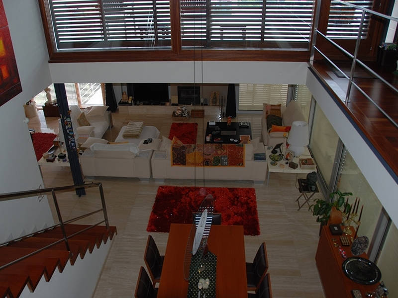 Просторная гостиная со столовой и камином, основная супружеская спальня с гардеробом, ванной комнатой и выходом на террасу, ещё три супружеские спальни со своими ванными комнатами, оборудованная и полностью экипированная кухня-офис с островом, кабинет с библиотекой, тренажёрный зал со СПА, джакузи, сауной, мини бассейном и вспомогательной кухней, бильярдная, винный погреб, кладовка, гладильная.