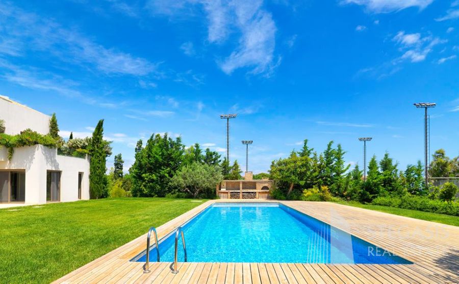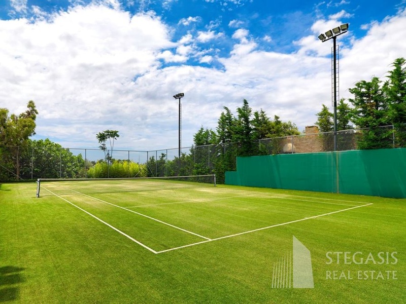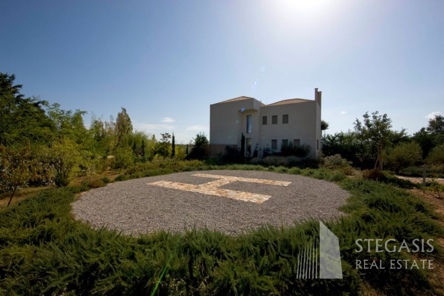 The Villa is located in Rafina, a high profile suburb of Attica Greece. The residence has a unique architecture, serving both an aesthetic purpose and a functional one. In reality, the villa is planned around the use of a fully developed outdoor living environment which includes a lake, a pool, a kitchen garden, a small vineyard, a tennis court and a dining area. Moreover, the villa is a highly energy efficient building since it follows sustainable design, containing cool roof & wall technology, high efficiency electro-mechanical systems and building materials that guarantee the minimization of long term maintenance costs. The interior design is highly contemporary and of minimalist character, featuring a small flower bed within the main living room, a staircase made of glass, a high tech elevator, two fireplaces, a Jacuzzi inside the master bedroom, fully wooden floors and a cozy attic. Property Characteristics: Exterior details, Plot size: 4,040 square meters, Pool size: 16×5 meters, Tennis court: 17×34 meters, Pond: 60 square meters, Rainwater tank: 90 cubic feet, Helipad. Interior details / Garage Level: 110 square meters, Parking space, Personnel room, Gym, Storage room / Ground Level : 118 square meters, Reception (58 sq.m.), Kitchen (58 sq.m.), Study (15 sq.m.), Guest WC / 1st Floor : 82 square meters Master bedroom with en-suite bathroom (35 sq.m.), Bedroom 2 (15 sq.m.), Bedroom 3 (13 sq.m.), Two bathrooms / Attic : 20 square meters / Construction details: Facade insulation, Radiant floor heating and cooling by REHAU, Floating wooden floors, Smart electricity systems, Thermal aluminum windows, Heat Pump by DAIKIN Solar collector – Boiler, Rain water collectors on the roof, Roof ventilation – Solar chimney.
