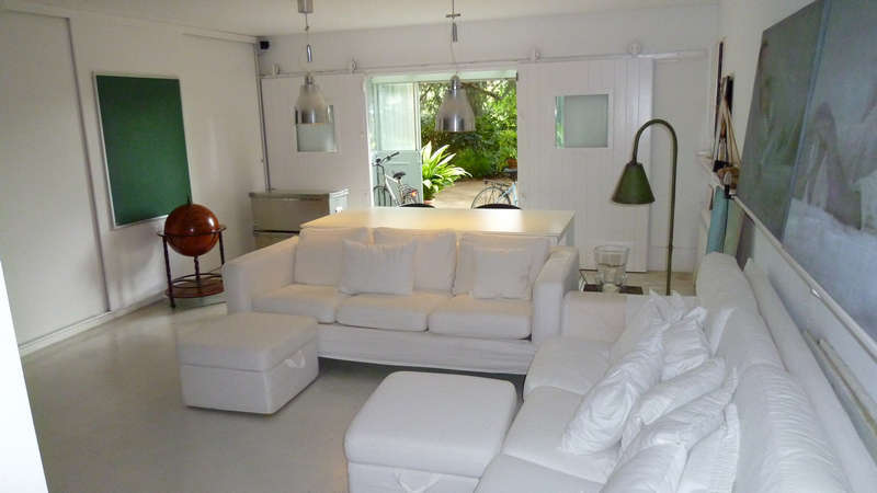 На нижнем уровне расположена спальня с ванной комнатой для обслуживающего персонала и кинозал с выходом в сад.