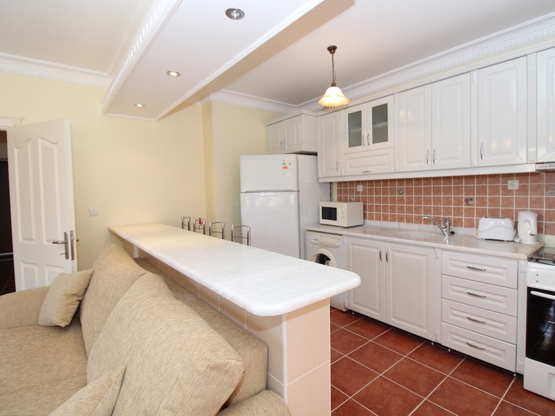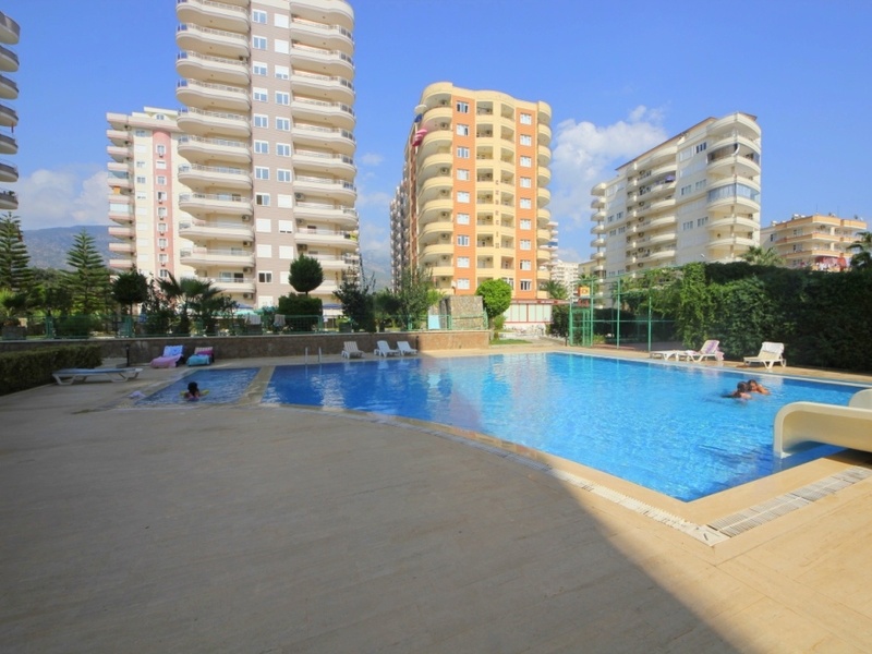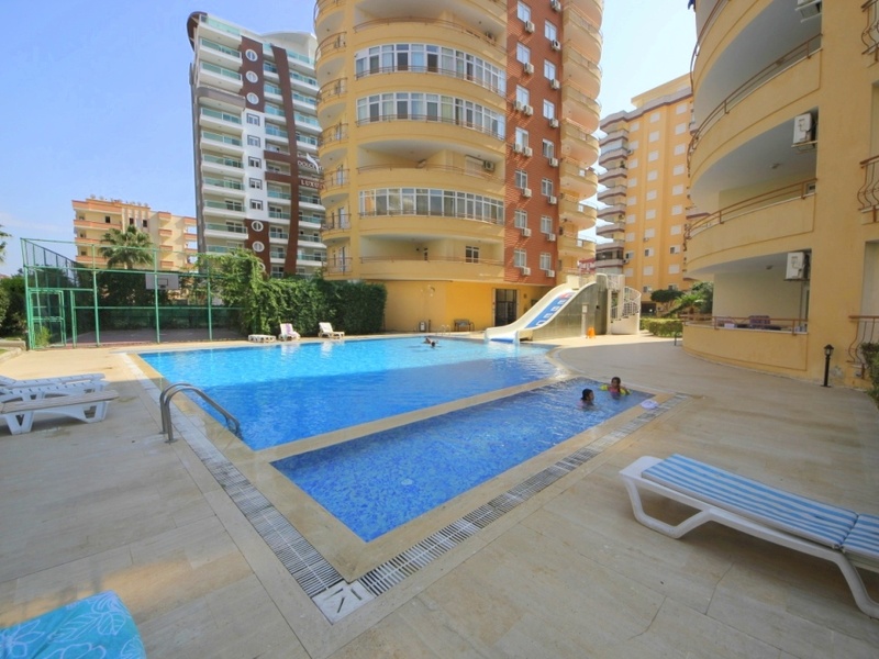 The Apartment is located in Mahmutlar, 500 meters to the beach, 15 km to Alanya city center and walking distance to shops, markets, Turkish bazaar. There is a busstop close to Complex and every 15 minutes public bus is running ro Alanya city center. 2 bedroom apartment is 125 m2 with open plan kitchen living room, 2 bathroom and 2 balconies. Apartment is fully furnished including white goods. There is a swimming pool with water slides, basketball pitch, generator and park place in complex.