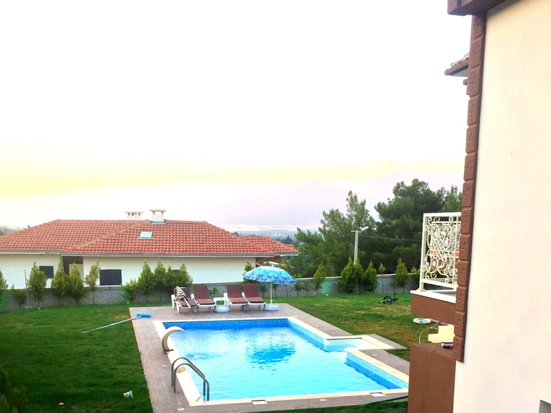 This beauty is in 1200m2 land surrounded by the trees.As you can see in the pictures , there is a beatiful view of mountains and forrest. Has its own pool in its garden. Inside and outside of the house decorated with luxury materials.