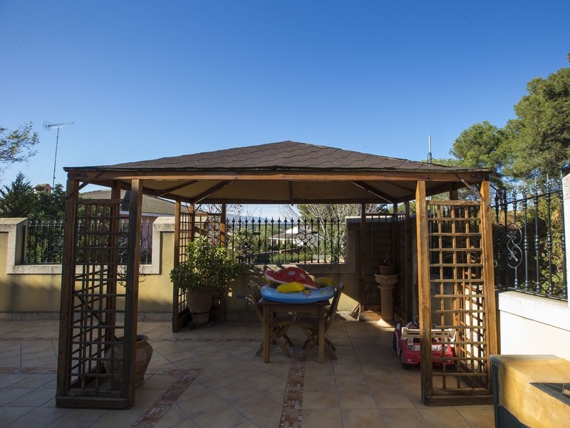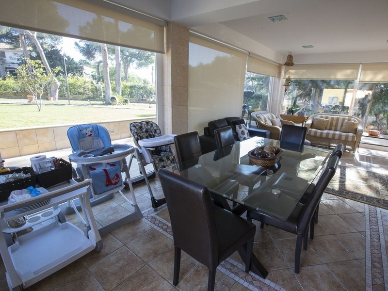 Большая веранда и летняя застекленная гостиная с раздвижными дверями и жалюзи. Снаружи основного здания: летняя столовая, полностью укомплектованная туалетная комната, кладовая комната со стеллажами, большая полностью укомплектованная летняя кухня и зона барбекю и паэльеро. Тренажерный зал с сауной и душем. Домик для садовых инструментов. Крытая парковка, рассчитанная на 4 машины и возможность припарковать еще 10 машин на площадке рядом с домом. Искусственный пруд для содержания декоративных рыб, самоочищающийся бассейн размером 8х4 м. Сад с поливом дождеванием по запрограммированному режиму. Доступ с улицы через 2 основные двери и 1 небольшую вспомогательную дверь, выходящие на 3 улицы, окружающие виллу. Размер участка: 3.000 м2, общая площадь жилого строения: 600 м2. Дом полностью оборудован всеми необходимыми коммуникациями, газ и электроснабжение, во всех помещениях установлены кондиционеры. Участок квалифицирован как городская земля, имеются все разрешения и лицензии. Вилла расположена в 15 минутах езды от аэропорта Валенсии (Манисес), в 30 минутах езды от Валенсии, в районе удобно связанном автотрассами с крупными городами Испании. Полностью готова к заселению.