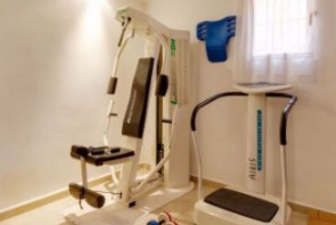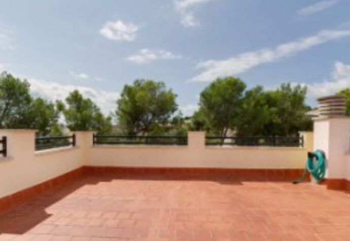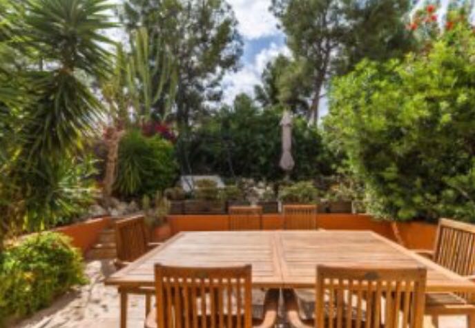 The spacious and bright terraced house is distributed over three floors in a quiet residential area in San Agustin. Five bedrooms and three bathrooms with private garden of 80 m2, roof terrace overlooking the forest and a communal pool. Community rates are included in the price Condition: well maintained Roof terrace, garden, terrace Bathroom with shower and window Equipped kitchen Floors: ceramic tile Equipment: furnished Wellness: Shared pool