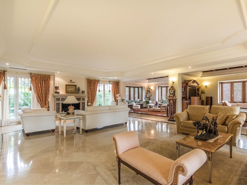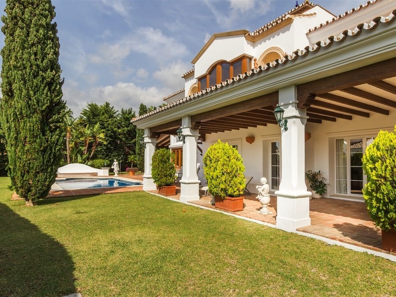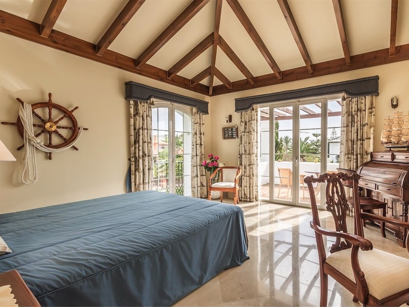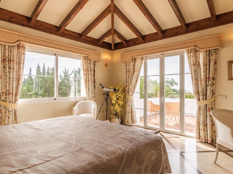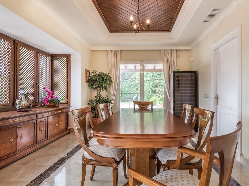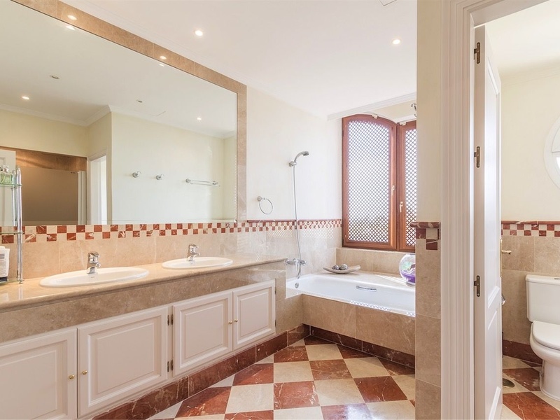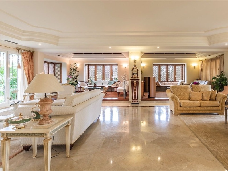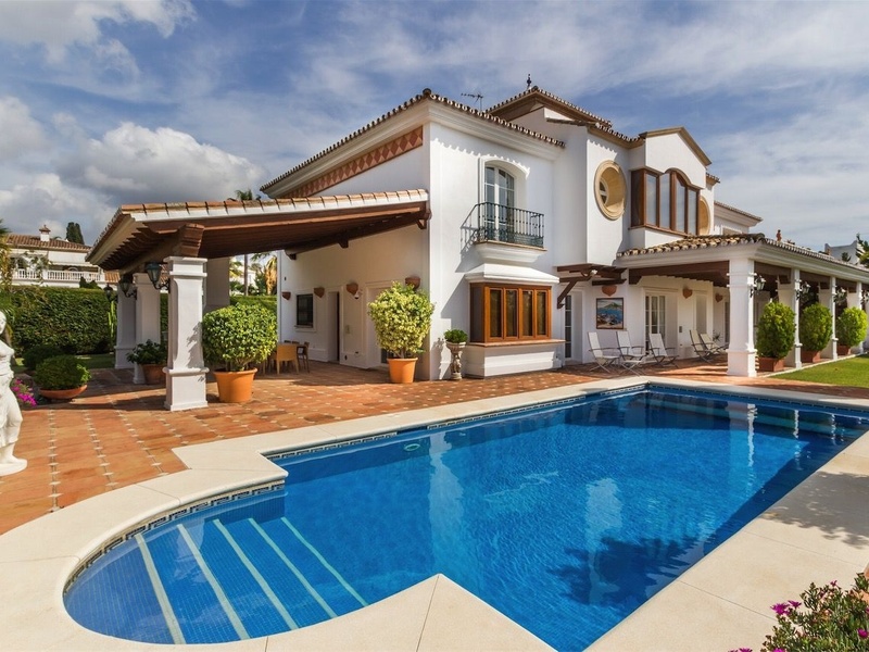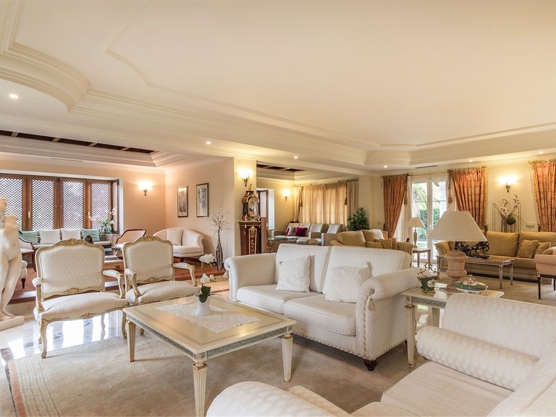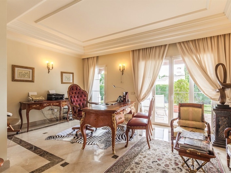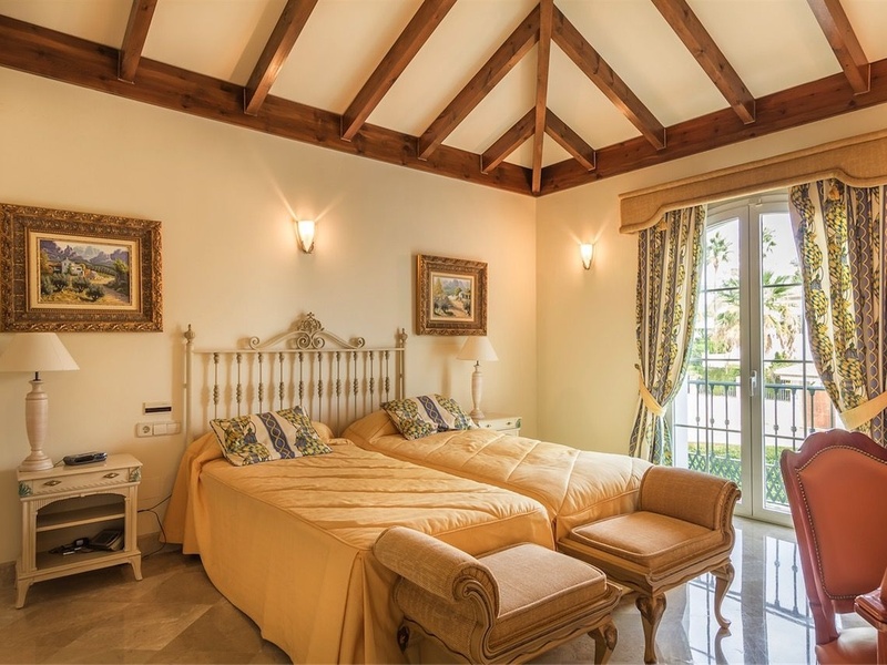 For sale Elite house near the beach in Baja de Marbella, Marbella The town and municipality in Spain, is part of the province of Malaga, in the autonomous community of Andalusia. The municipality is located in the area (komarki) of the Costa del Sol-Occidental. For sale this elegant luxury villa, typical Spanish architecture, in one of the most prestigious residential areas in Marbella: Bahia de Marbella, the closed complex, is guarded 24 hours, within walking distance to the sea. Beaches here with white natural sand. The house is located on an elevated site, has an opening view and from the main bedroom you can see the sea. The house is built on a plot of 1800 sqm, has a beautiful mature garden, large covered terraces, a barbecue area, a private heated pool. The house is in immaculate condition. It is built with spacious and comfortable rooms, bathrooms and has excellent finishing qualities. Marble floors, double glazed windows, heated floors throughout the house, except the basement, air conditioning cold and hot everywhere, alarm system installed. The villa is built on 3 floors and is oriented to the south. On the first floor there is a beautiful hall, a large hall of 100 m2 with various zones, a fireplace, an office room, a separate dining room, a fully equipped kitchen, a pantry and a guest toilet. Along the southern facade, a large enclosed terrace overlooking the garden and the pool, with a beautiful barbecue area. On the second floor there are 4 large bedrooms with 4 bathrooms. The master bedroom has a dressing room, a large bathroom and a private terrace with a fantastic sea view. On the third floor there is a tower with an open terrace from which you can enjoy a panoramic view of the sea. On the ground floor there is a bar with billiards, a gym, a guest toilet, a bedroom with natural light and a bathroom, a wine cellar, a laundry room and a technical room. There is a garage for 4-5 cars. Furniture is not included in the price. The house is located 300 meters from one of the best beaches of Marbella. This villa is ideally located: walking to the beach, just 10 minutes drive from the center of Marbella, close to the Costa del Sol hospital. The property can be a wonderful family home or a good investment, as the area is very exclusive. Total area: 960 m².Useful area: 670 m². Plot area: 1800 m². Bedrooms: 5, Baths: 5. Year of construction: 1999.