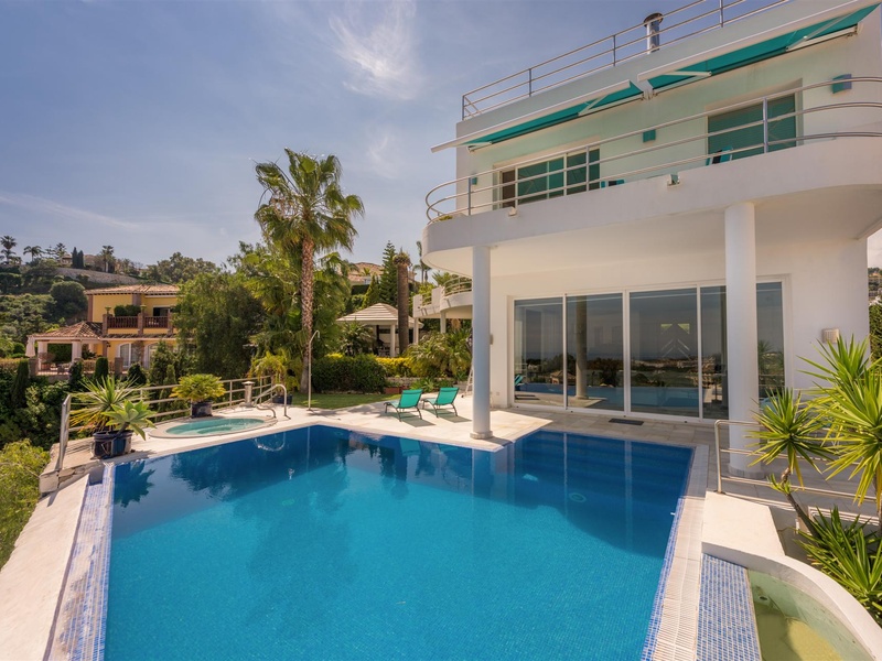 For sale a unique villa in Nueva Andalucia, this is the district of the municipality of Marbella, in the province of Malaga, Spain. It is located in the center to the west of the municipality, between the center of Marbella and the village of San Pedro Alcantara. The area includes the area of villas and apartments designed in the traditional Andalusian style, scattered among the large golf courses. It includes Puerto Banus and El Angel, as well as the Golden Mile, by concentrating some of the most luxurious areas of the city. A unique villa in a modern style with a panoramic view of the valley and the sea. Located in a closed community with access to the top of the hill. The villa has a large entrance hall through which opens a spacious living room on a separate level with a high ceiling. On the right side of the villa there is a separate dining room with access to a high standard kitchen, as well as a room with a TV. On the second floor there is a master bedroom suite and another bedroom. On the third floor there is an office that can be used as another bedroom. Huge roof terrace with panoramic views. In the basement there is a home theater, a gym, a sauna, a billiard room, a laundry, a warehouse, a wine cellar and a garage for 2 cars. At this level there is another bedroom and bathroom. Heated floors, white, marble. Large terrace with lawn, fully equipped barbecue area and summer dining room with gazebo. This area, located along Nueva Andalucia, became a continuation of the Golf Valley. It is famous for its golf course and country club. There are facilities such as a restaurant, sauna, health club, gymnasium, squash and golf school. The total area of the villa is 531 sq.m., the area of the plot is 1,198 sq.m. In total there are 4 bedrooms, 4 bathrooms.