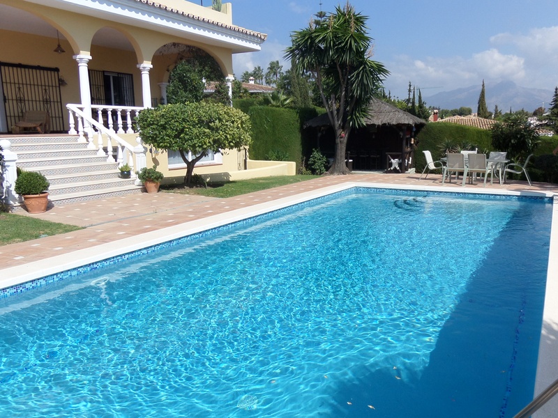 Beautifully renovated villa situated in the prestigious Paraiso Alto Urbanization. This Mediterranean influenced villa was fully renovated in 2006 to a very high standard. Offering 5 double bedrooms all en-suite and a self-contained 1 bedroom apartment with its own washroom and kitchenette. The property also comes with beautifully manicured gardens, a private pool and outdoor bar area. This house has been very well designed making it perfect for entertaining as well as a very warming family home. Garage and parking are available