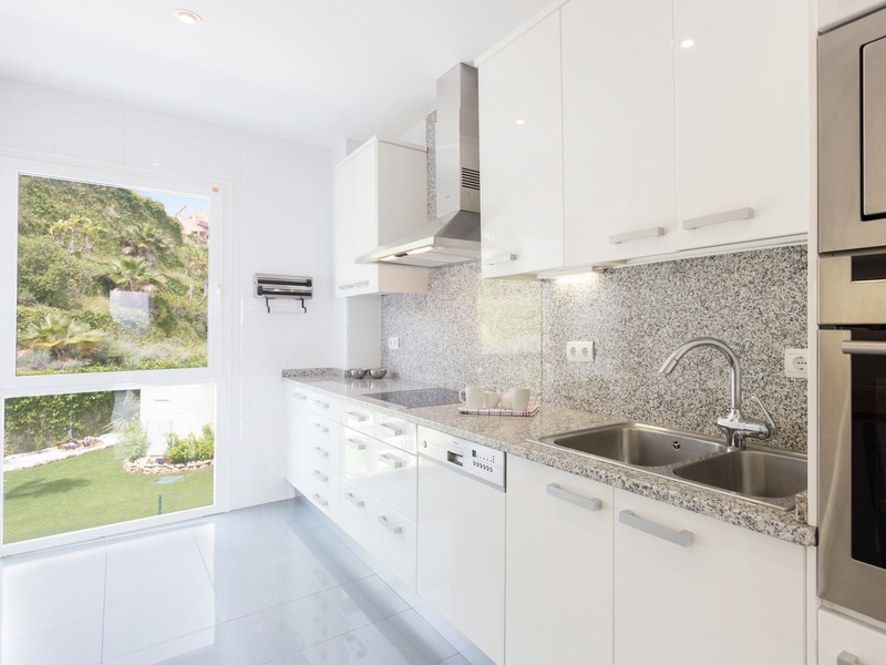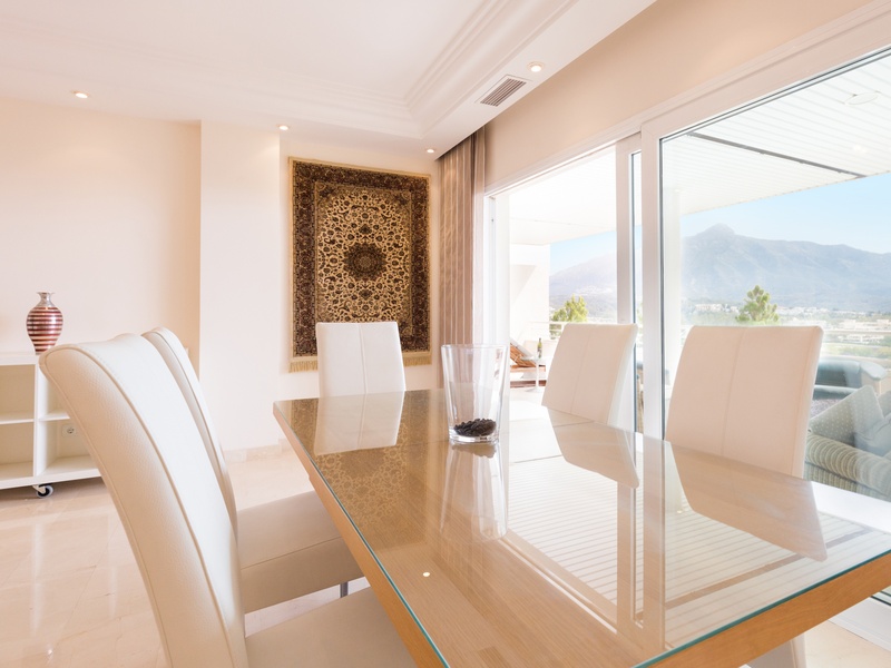 Very bright two bedroom apartment located in the sought after golf valley of Nueva Andalucia, near Puerto Banus, with excellent views of the manicured greens and fairways of the prestigious Las Brisas Golf Club and Mediterranean Sea and mountains. Beautiful ample South East facing terrace. Underground parking for 2 cars and a storage room are included in the price. There are two large pools (one is heated) and a paddle court. Gated urbanization with 24 hours security , residents and guests can access the private underground parking lift from the door of the apartment. It is situated in a quiet area within walking distance to local amenities and even the resorts of Puerto Banus. Golf lovers also have their pick of the best golf courses including Aloha , Los Naranjos and La Quinta Golf and Country Club just minutes away. El Corte Ingles is just a 3 minute drive away, the Golden Mile and Old Town Marbella are only at a 10 minutes’ drive