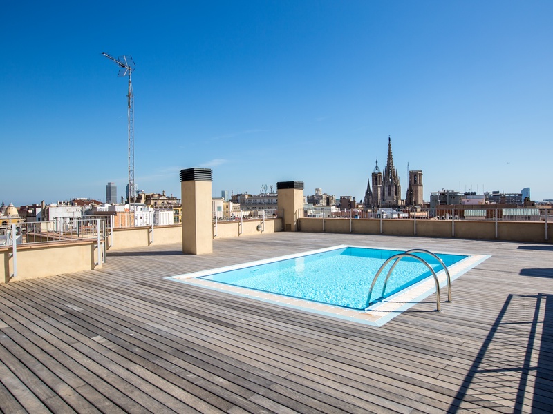 Spacious, luxury apartments of 70 m2, ideal for couples or families. POSSIBLE RENTAL ON OTHER CONDITIONS The apartment has a large bedroom with a double bed, a bright living room with a pull-out sofa and a dining area. The whole apartment is fully equipped, there is all the necessary equipment, including air conditioning, TV, washing machine, etc. There is also a large terrace with a swimming pool and a fitness center. Here you can enjoy a panoramic view of Barcelona and the hot, Spanish sun. What else do you need for a good rest?