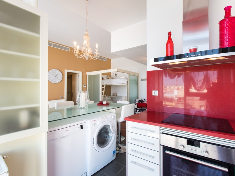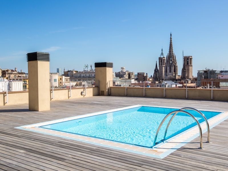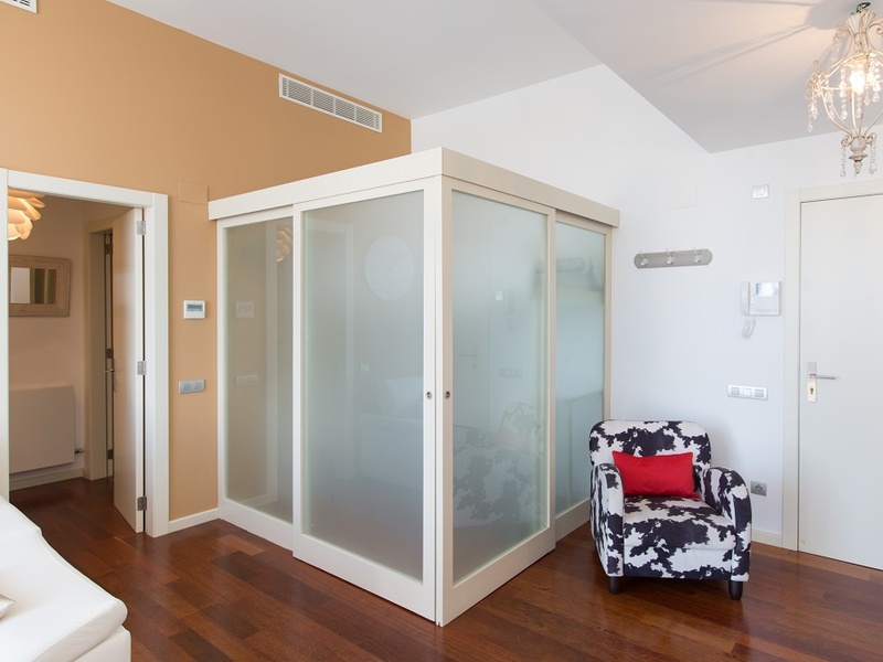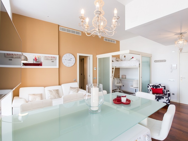 This spacious and luxurious apartment of 70 m2 is ideal for couples or families. POSSIBLE RENTAL ON OTHER CONDITIONS It consists of a large bedroom with a double bed and a living room with a single bed and a space that can be divided by a panel. The apartment is fully equipped and includes air conditioning, TV, washing machine, Wi-Fi Internet. On the roof there is a terrace with a swimming pool and a gym. Here you can enjoy a wonderful panoramic view of Barcelona. What else do you need for a perfect holiday?