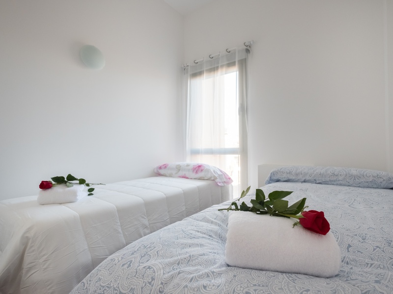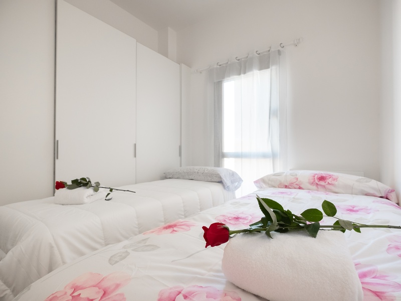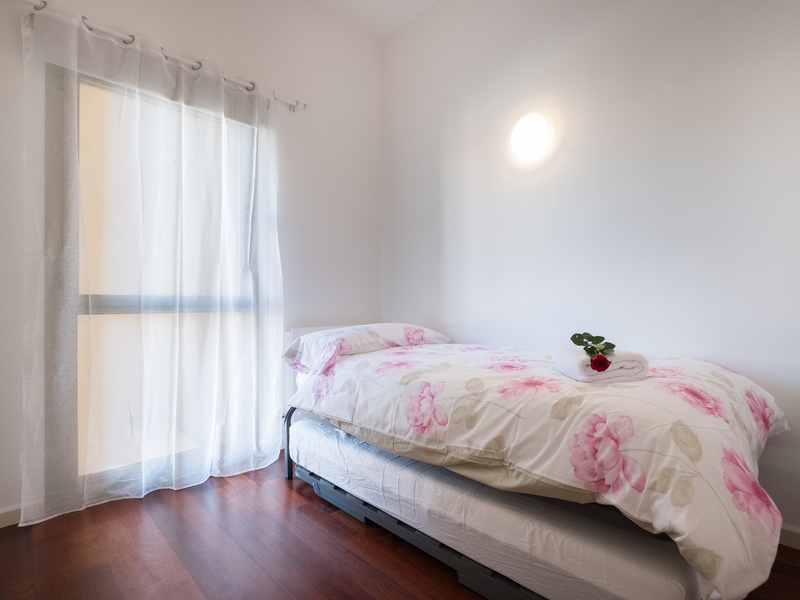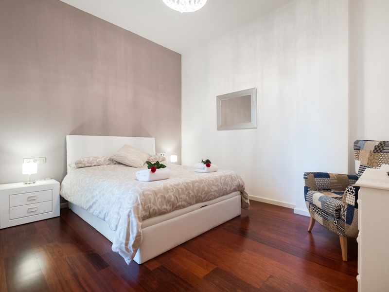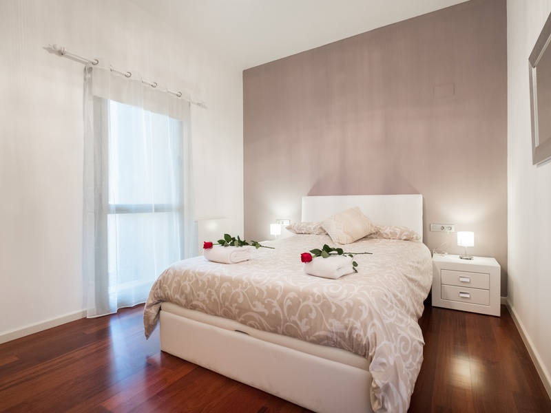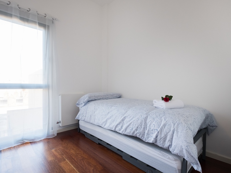 This luxurious and spacious apartment of 100 m2 is ideal for families. POSSIBLE RENTAL ON OTHER CONDITIONS The apartment has a large bedroom with a double bed, 2 bedrooms with 2 separate beds in each and a spacious living room with a dining area and a small corner with a desk. The whole apartment is fully equipped, including air conditioning, heating, TV, washing machine, Wi-Fi Internet. In addition, the building has a concierge and a terrace with a swimming pool and a gym on the roof where you can enjoy a panoramic view of Barcelona.