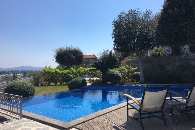 Villa in a traditional village Ortakent in Bodrum. The villa was built in a traditional style with a stone ornament. There is a great garden and a swimming pool with a seaveiw. Restaurants and shops are 10 minutes walk away.