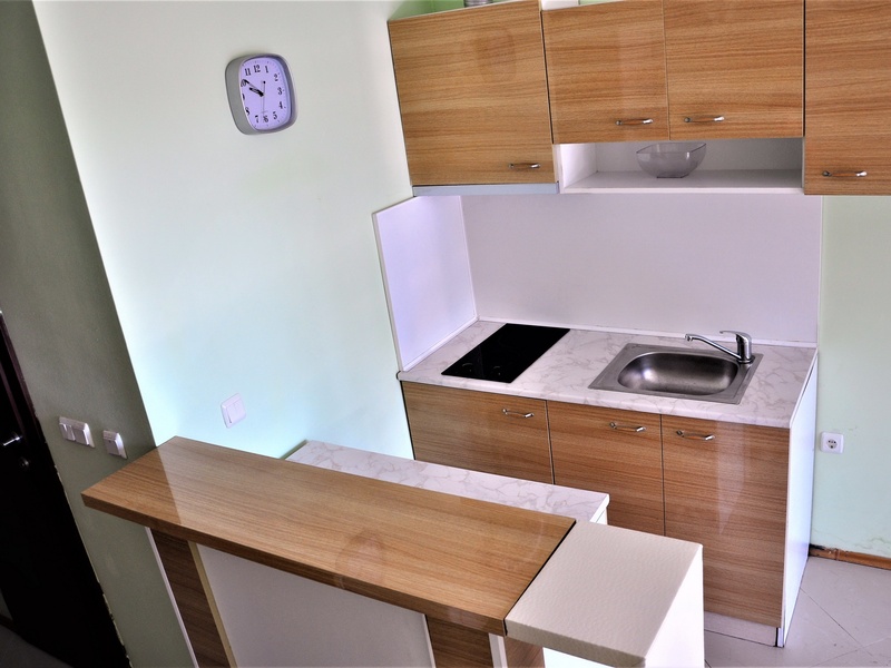 Продаем просторную меблированную студию с видом на бассейн, площадью – 39 кв.м, на 2 –ом этаже в к-се с актом 15. Жилье состоит из зала с кухней, сан.узла, прихожей и балкона. Мебель и техника входят в цену. Комплекс "СВЯТОЙ ГЕОРГИЙ" расположен в северной части курорта Солнечный берег в 500 метрах от пляжа. Состоит из двух зданий. Апартаменты разной площади. На территории комплекса: бассейн, озелененная территория и круглосуточная охрана и обслуживание. Такса за охрану и обслуживание – 250 евро в год. Без комиссии с покупателя!