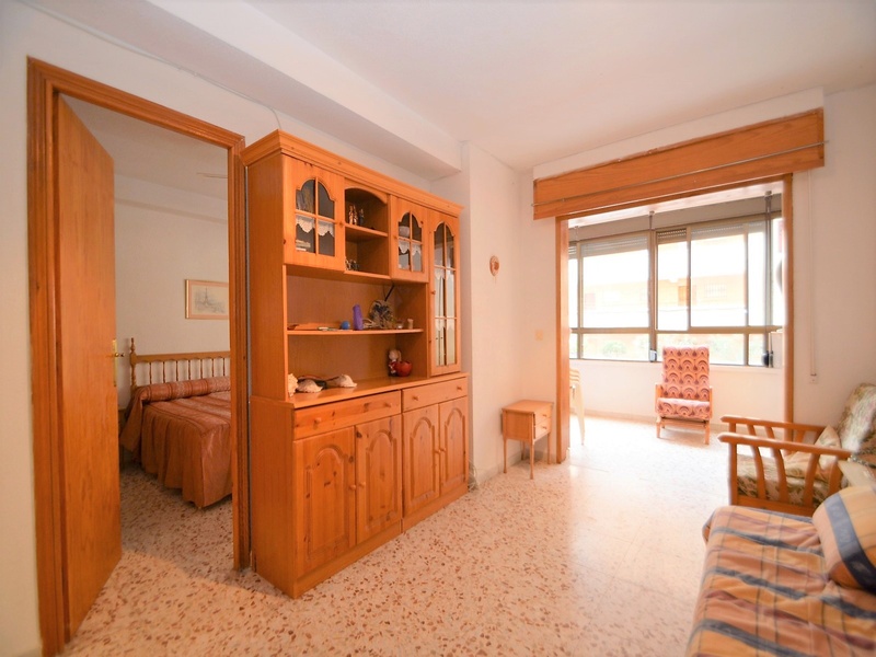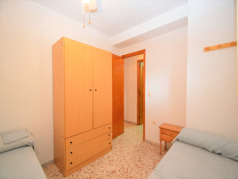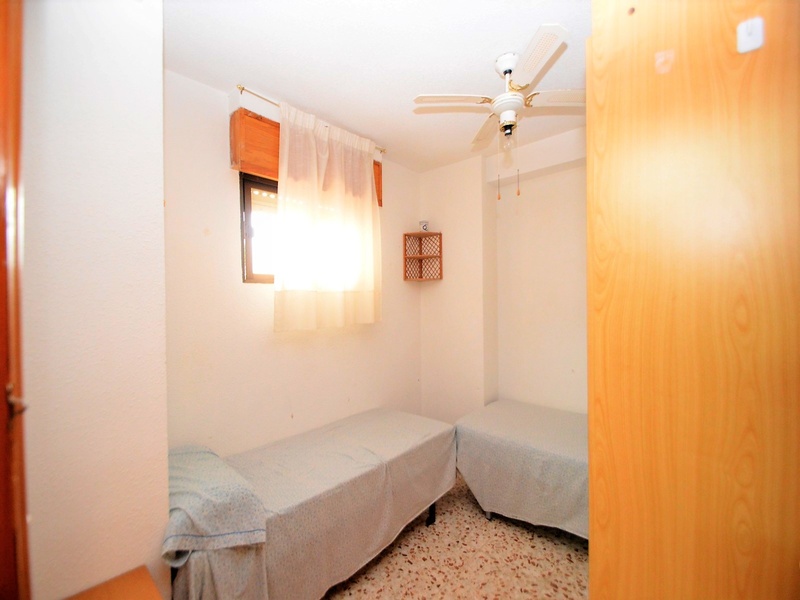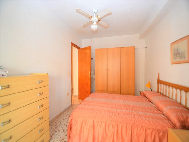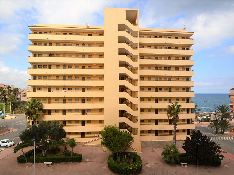 Apartment for sale in a suburb of Torrevieja, 20 meters from the beach of La Mata. The apartment has two bedrooms, one bathroom, a separate kitchen, a living room and a large terrace with a side sea view. Spacious and very bright rooms with all the windows facing the street. The apartment is fully furnished and equipped with home appliances, with great opportunities for improvement. The building is in very good condition, has two elevators, a ramp, a communal utility room and a common solarium with a magnificent view of the sea. It also disposes of an open parking at the entrance. Second line from the sea, in one minute walk from the beach, a local supermarket, a bus stop, many quality cafes, restaurants, etc. In close proximity to a huge number of services and amenities for tourists and residents of the area. Rocky coast with a magnificent underwater world, several natural bays and one of the best beaches of this coast – La Mata beach, stretching for many kilometres to be just a few minutes walk.