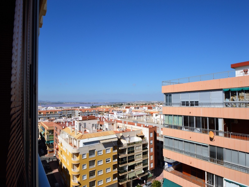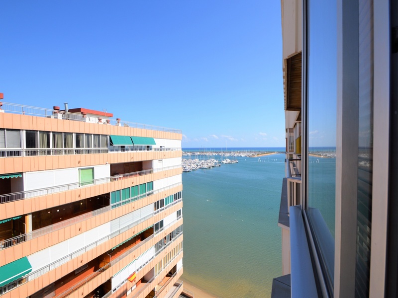 Квартира на продажу в Торревьехе, на первой линии от моря. Просторные светлые апартаменты с отдельной кухней, прачечной, двумя санузлами, тремя спальнями, большой гостиной и просторной террасой с боковым видом на море и прекрасным видом на город и озеро Лас-Салинас-де-Торревьеха. Квартира меблирована и оборудована всей необходимой бытовой техникой. Находится в очень хорошем состоянии, имеет кондиционеры в гостиной и в спальнях. Располагается на девятом — последнем этаже здания. Дом имеет два лифты и общий солярий, а также общий бассейн на краю пляжа с видом на море. Удобное месторасположение в менее чем в 500 метрах от спортивного порта La Marina International, в минуте от множества супермаркетов, магазинов, ресторанов и кафе. В 5-ти минутах ходьбы от волщебной набережной Vista Alegre и чудесного центра этого города. В районе также имеется государственная школа, поликлиника, несколько парков с детскими площадками и всевозможные удобства и услуги.