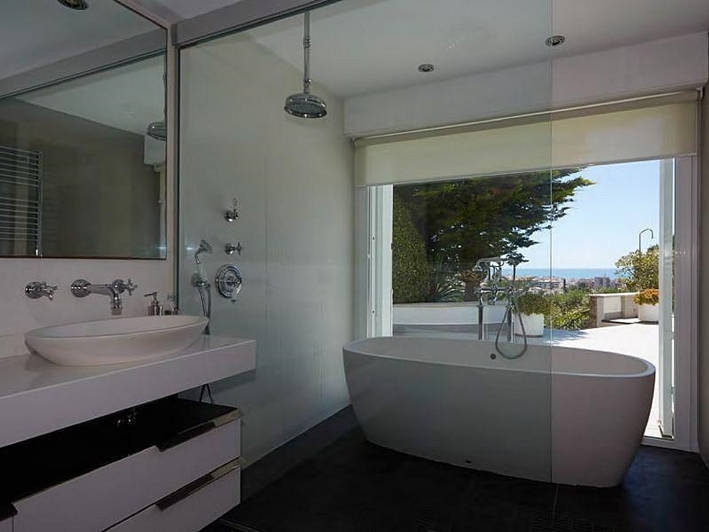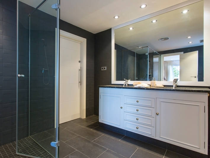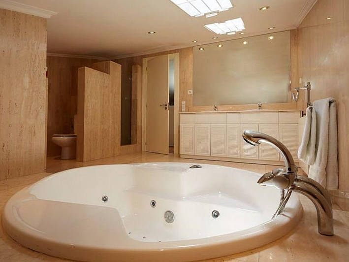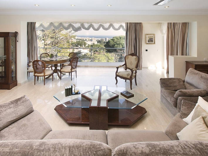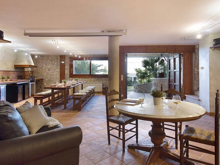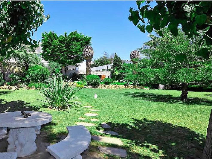 Основная гостиная 120 кв.м. со столовой, камином и выхождом на террасу, ещё две вспомогательные гостиные, 7 спален, 6 ванных комнат, кабинет, оборудованная кухня-офис, винный погреб, выдолбленный в скале, прачечная,  кладовка, просторный гараж.