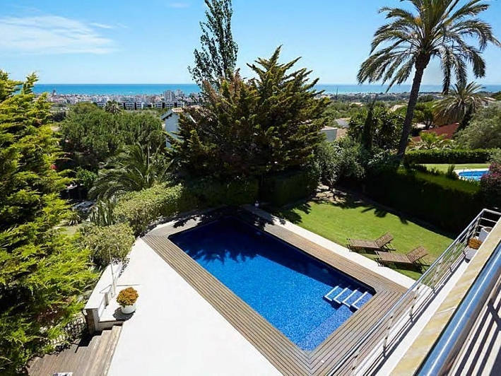 Просторная элитная вилла с великолепными видами на море, бассейном и садом на участке 17 с. в привелигерованной зоне элегантного городка Ситджес поблизости от Барселоны.