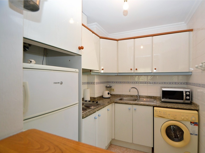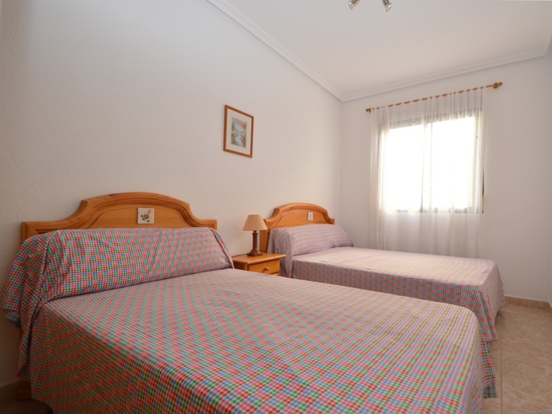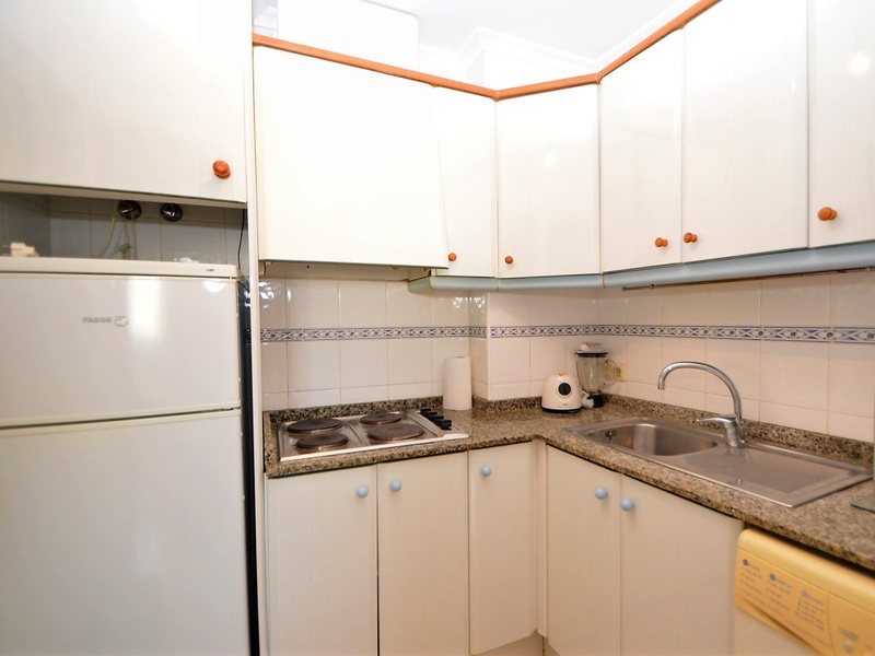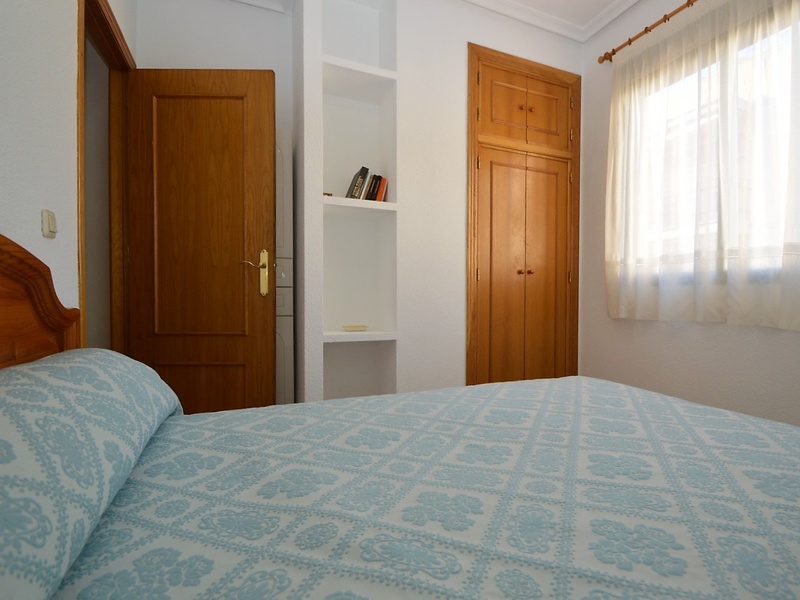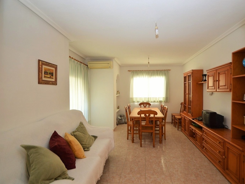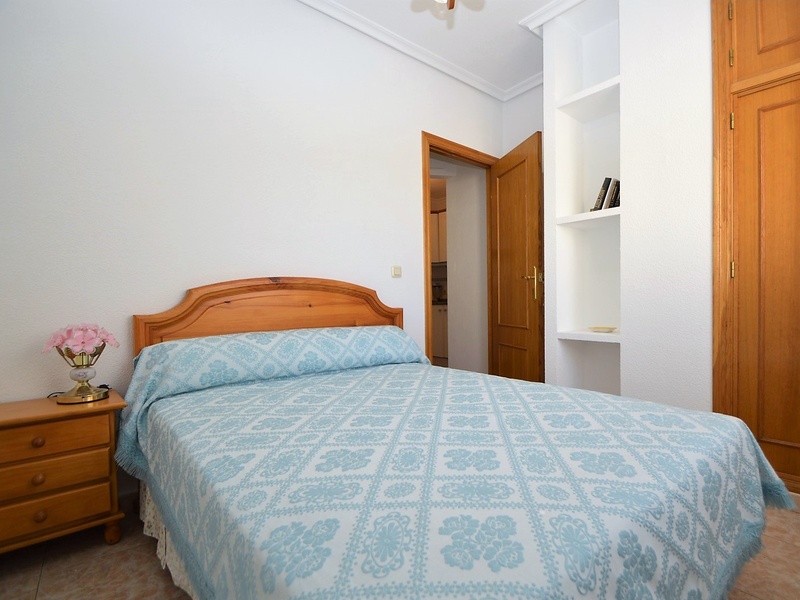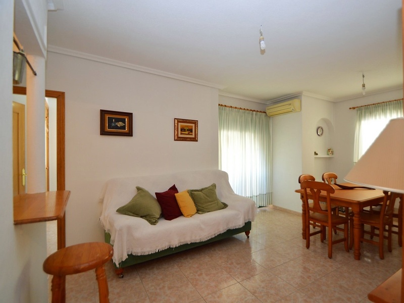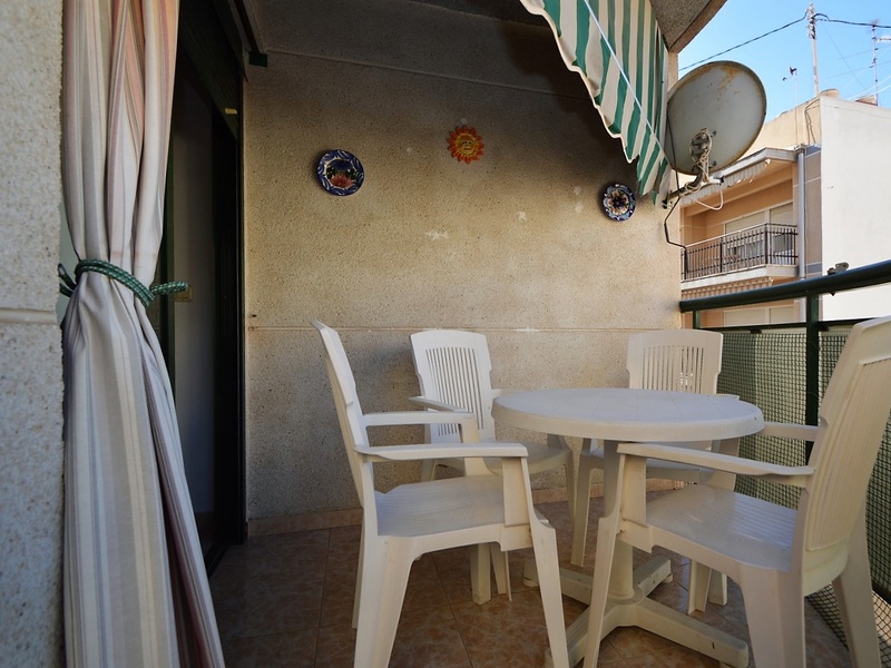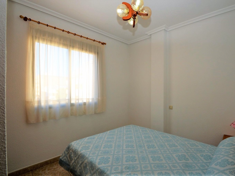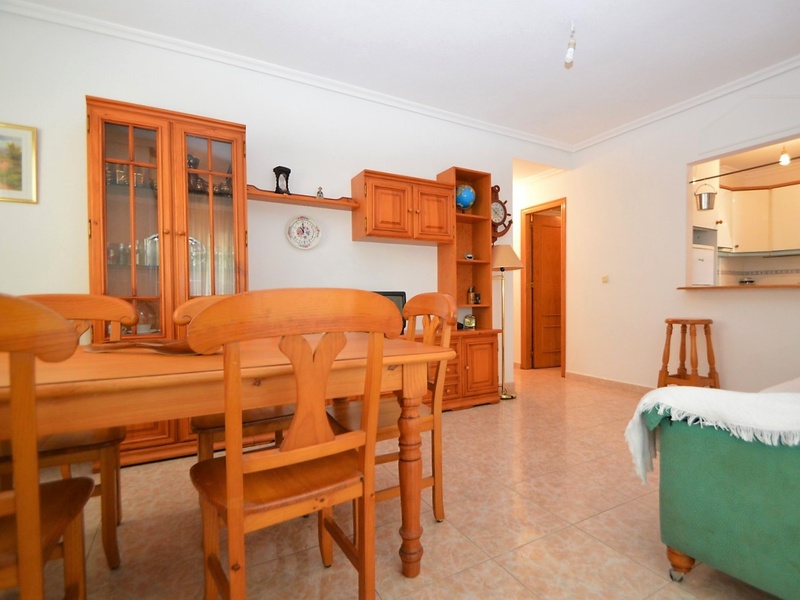 Flat for sale in Torrevieja, on the second line in 100 meters from the beach of Playa del Cura. The apartment occupies the corner of the first floor of the building. It has two bedrooms, a large living room with an american kitchen, one bathroom, and a terrace with a side sea views. Very bright rooms with large windows, all overlooking the street. The apartment was renovated 2 years ago and is in immaculate condition. Sold with all furniture and household appliances, ready to move in any time. The building itself is also very well maintained, with an elevator and a common terrace. The most convenient location. All kinds of services nearby. Ideal for living throughout the year or spending holidays, enjoying the sun, the beach and Mediterranean kitchen.