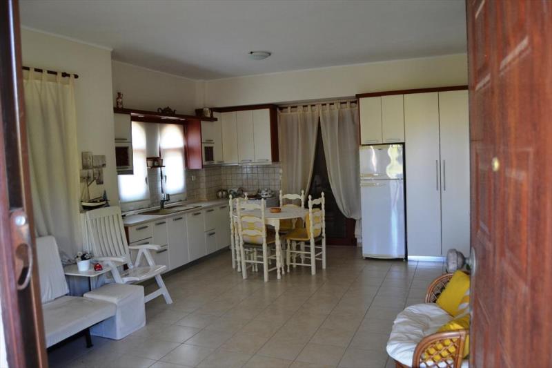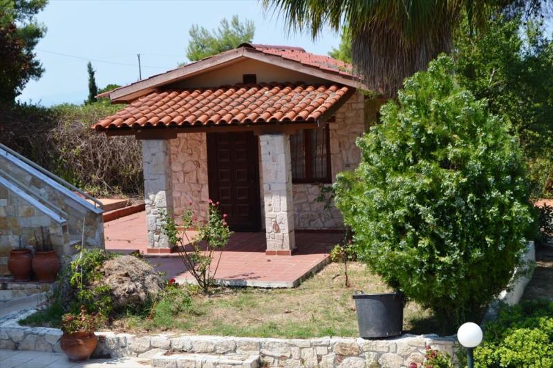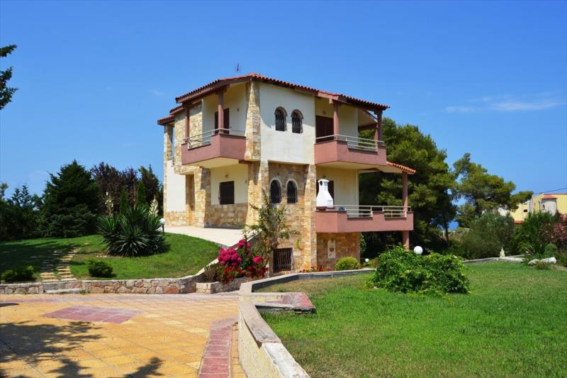 Отличный дом постройки 2006 года находится в тихом, живописном местечке, в 300 метрах от моря. Это район полуострова Кассандра с развитой инфраструктурой, здесь есть все необходимое для комфортного круглогодичного проживания.