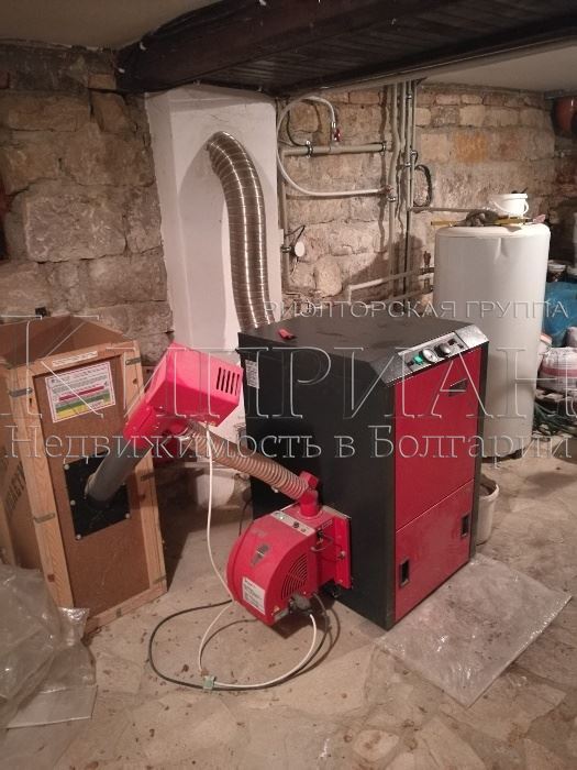 Отопительная система с пелетный котел, камин, во всех комнатах есть радиаторы.