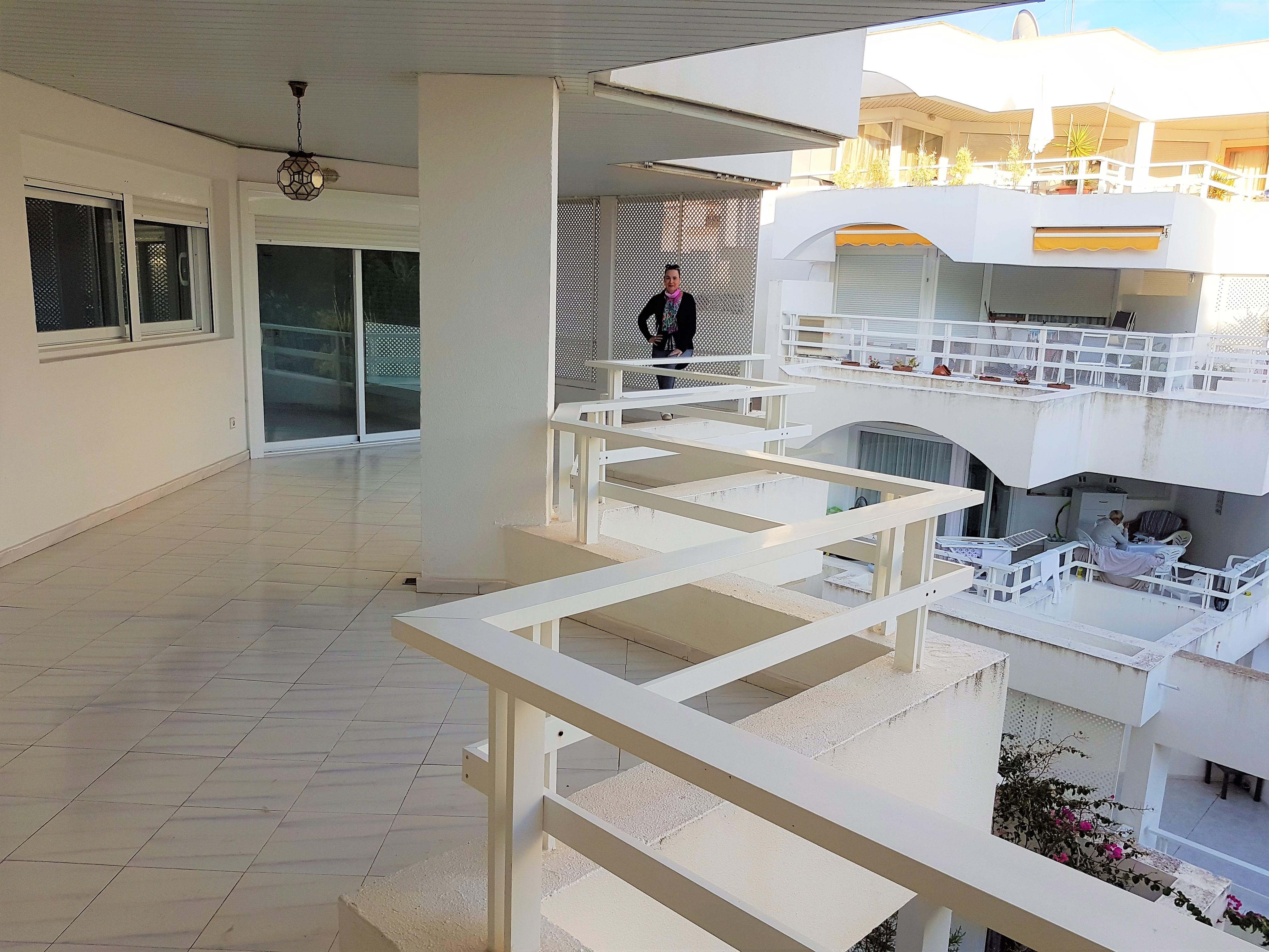 Ein Sandstrand mit Meerzugang in das flache Wasser, steht Ihnen in direkter Nachbarschaft zur Verfügung. Die Wohnung liegt im ersten Obergeschoss, ist mit 141m² Wohnfläche sehr groß und der Terrassen/Balkonbereich bietet Ihnen weitere äusserst komfortable 36m². Die Anlage ist rundum mit einem Zaun eingefriedet und ist nur mit entsprechendem Schlüssel über Tore zu betreten. Ihr Fahrzeug parken Sie auf Ihrem, zur Wohnung gehörenden Freiplatz. Auch hier erhalten Sie den Zugang über ein großes, elektrisch betriebenes Tor. Die Wohnung erreichen Sie über eine 16 stufige Treppe. Von der großen Empfangsdiele aus, geht es zur Rechten in den sehr großen Wohnbereich und zur Linken in das erste Schlafzimmer mit angegliedertem Duschbad. Geradeaus von der Diele aus, steht der sehr große Küchenbereich modern möbliert zur Verfügung. Hier steht auch ein Vorratsraum zur Verfügung. Angegliedert an die Küche finden Sie den Hauswirtschaftsraum mit Warmwasserspeicher. Von der Küche aus, haben Sie per Schwingtüre direkten Zugang zum Wohnbereich. Vom Wohnbereich aus haben Sie über eine Diele Zugang zu einem großen Wannenbad zur Linken und zur Rechten zu einem weiteren Schlafzimmer. Die Diele geradeaus steht bei Bedarf ein weiteres Schlafzimmer zur Verfügung, an welches ein weiteres Wannenbad angegliedert ist. Von diesem Schlafzimmer als auch vom großen Wohnbereich aus, besteht die Möglichkeit des Zugangs auf die äusserst umfangreiche sehr große Aussenterrasse , wobei man einen wunderschönen sehr romantischen Ausblick auf die topgepflegte Parkanlage und zum Gemeinschaftspool hat um dort wunderbar zu relaxen und zu schwimmen .