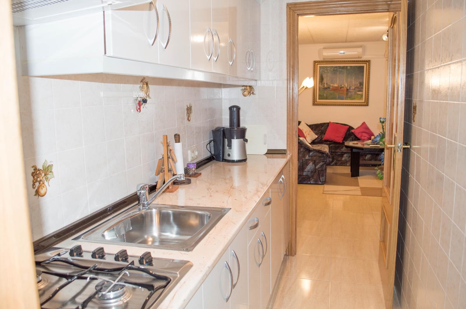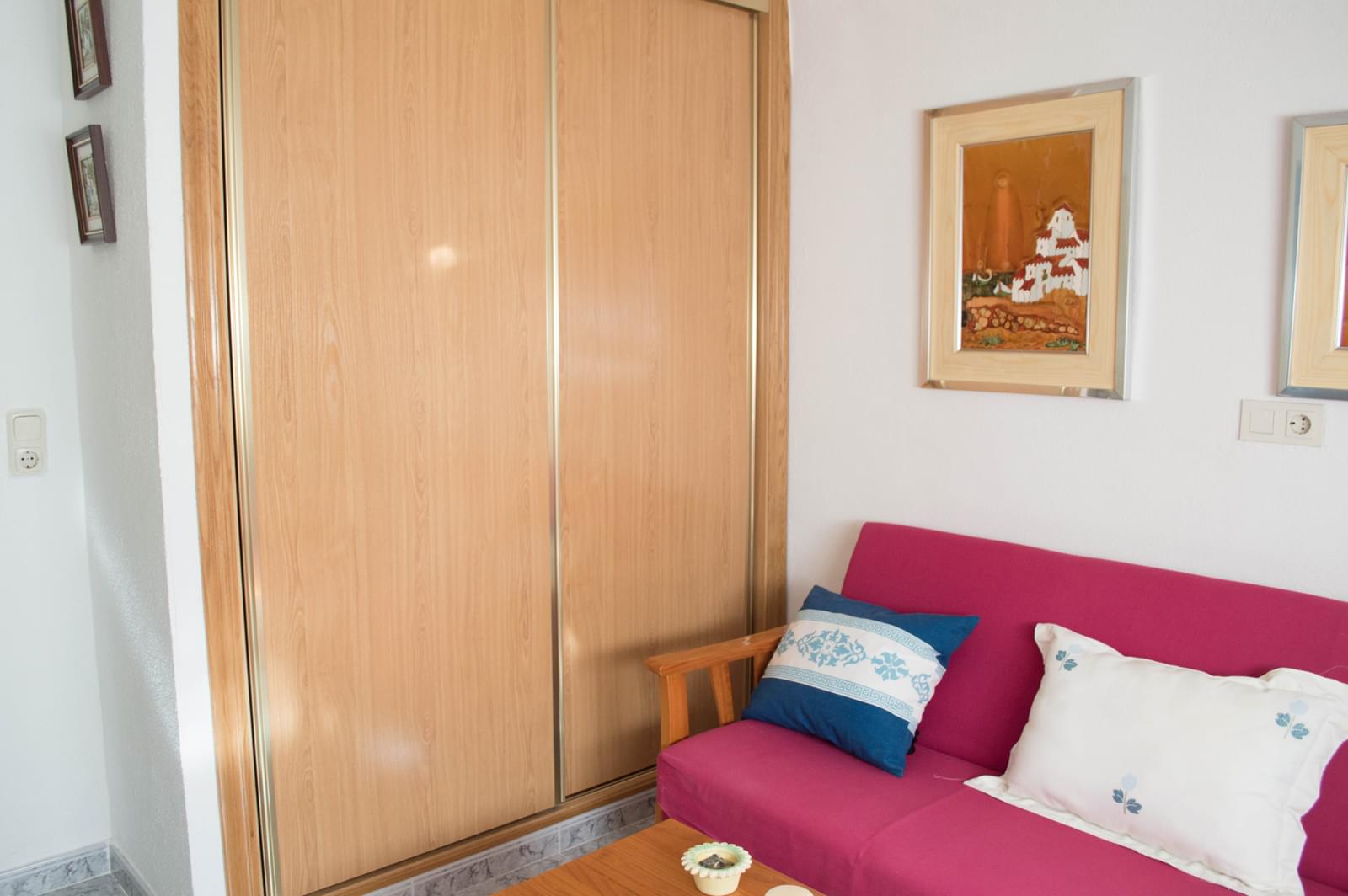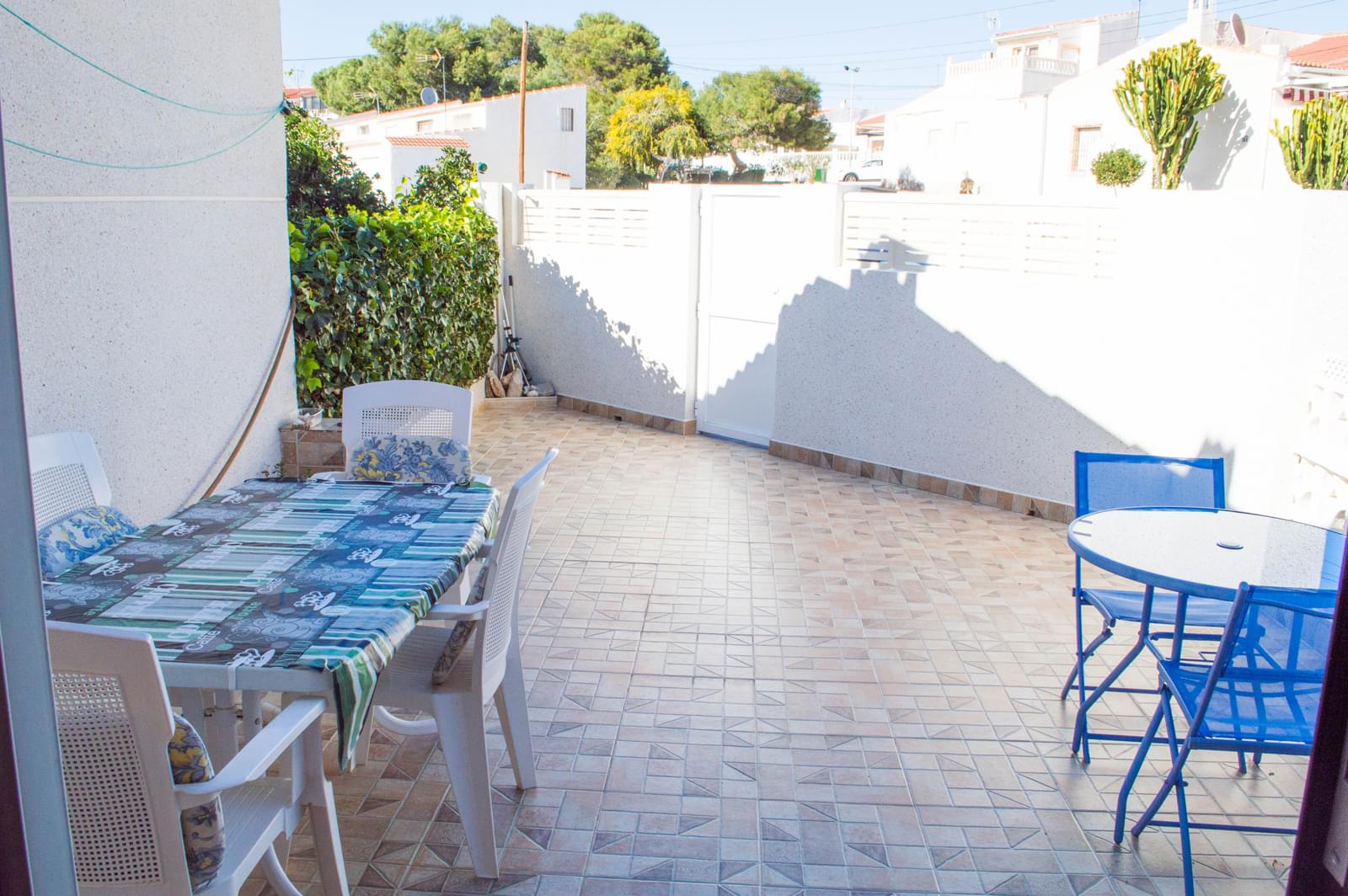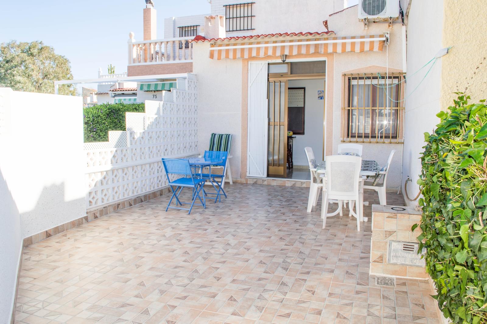For sale wonderful and big bungalow in Moncayo. It has 3 bedrooms, large living-dining room, 2 bathrooms, garage with kichen, air-conditioning, large terrace, independent kitchen, fireplace, solarium. It is located in a gated complex, it has swimming pool, green areas, sports areas, the areas for children and for the rest. 700 m from the sea!! The house has perfect condition!