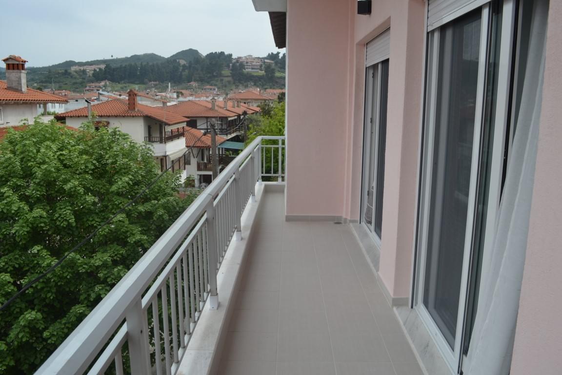 The apartment is for sale with an area of 55 sq.m. on the peninsula of Kassandra, Chalkidiki region. The apartment is located on the third floor and consists of 2 bedrooms, living room with kitchen, one shower room. Has a view of the sea, the mountains, the city, the forest, also has furniture, armored entrance doors, air conditioning.