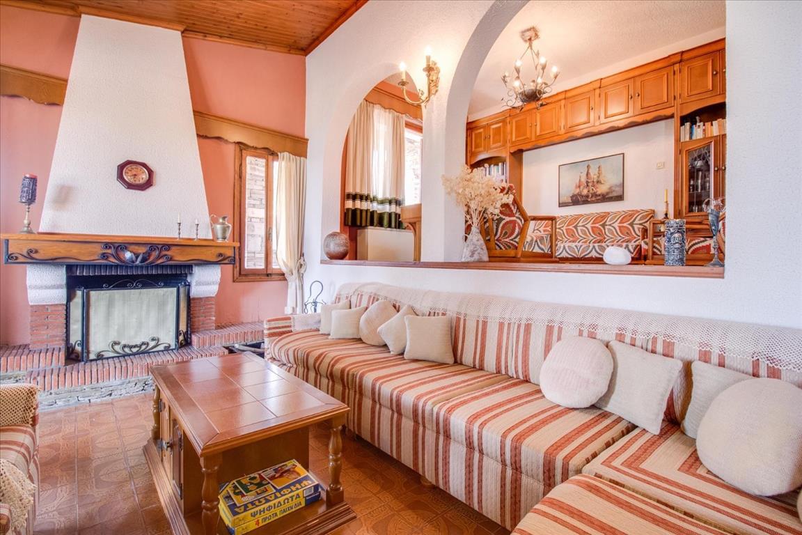 For sale is a 2-storey villa with an area of 290 sq.m on the Sithonia peninsula, the Chalkidiki region. The first floor consists of 2 bedrooms, living room, one kitchen, one bathroom, one shower room, one office. The second floor consists of 3 bedrooms, 2 bathrooms. Has a view to the sea, to the mountains, to the forest, also there is furniture, armored entrance doors, fireplace, air conditioning, parking space, garden, lawn, barbecue, heating, utility room.