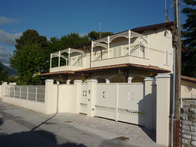 В 900 метрах от моря, вилла новой постройки на две семьи. Каждая часть имеет площадь 212кв.м. и состоит из: гостиная с кухней, 2 спальные, 3 ванные, мансарда, кладовка, терраса, сад (216/239 кв.м.).