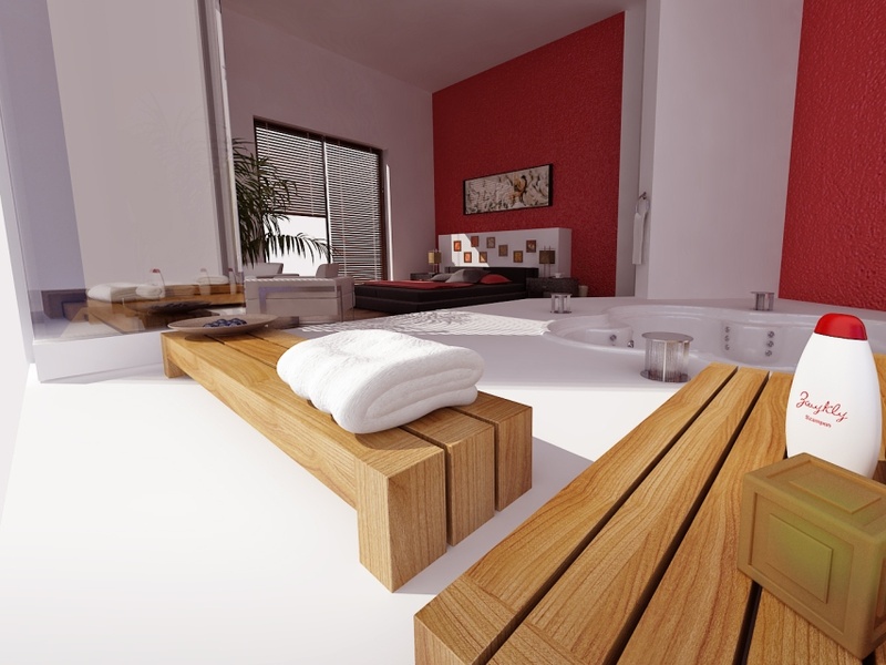 - Ванные комнаты с ваннами, душем, джакузи и мраморная плитка