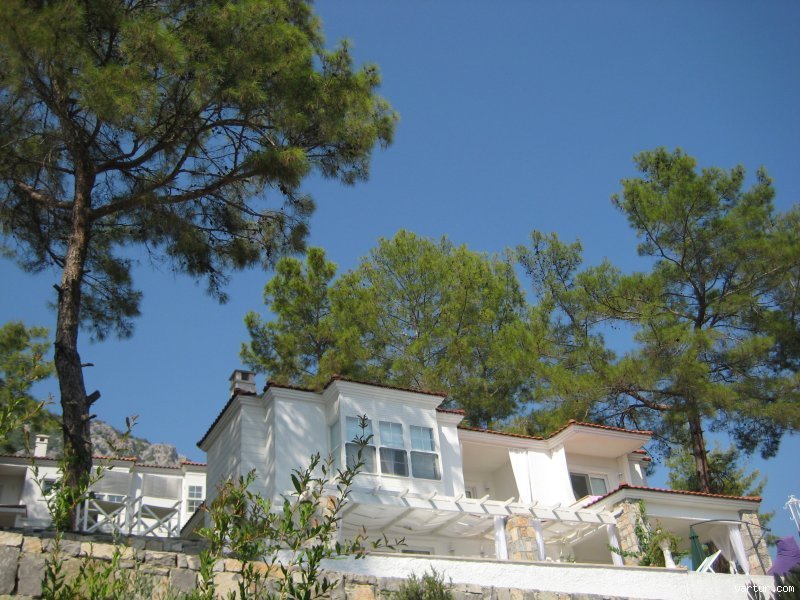 Возле каждой виллы есть по отдельному,собственному бассейну 35 кв.м. и терраса из камня