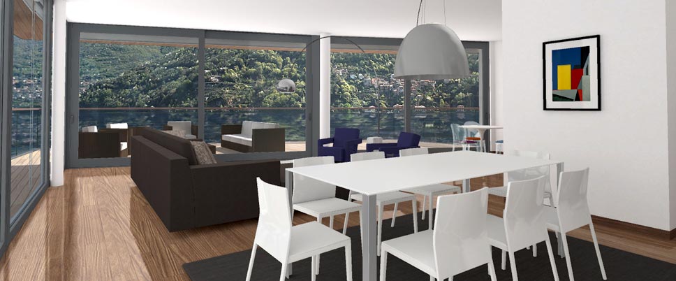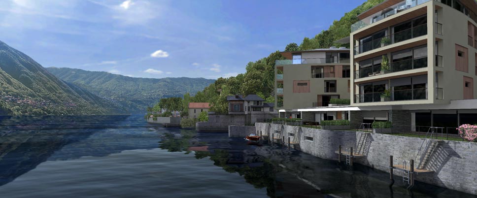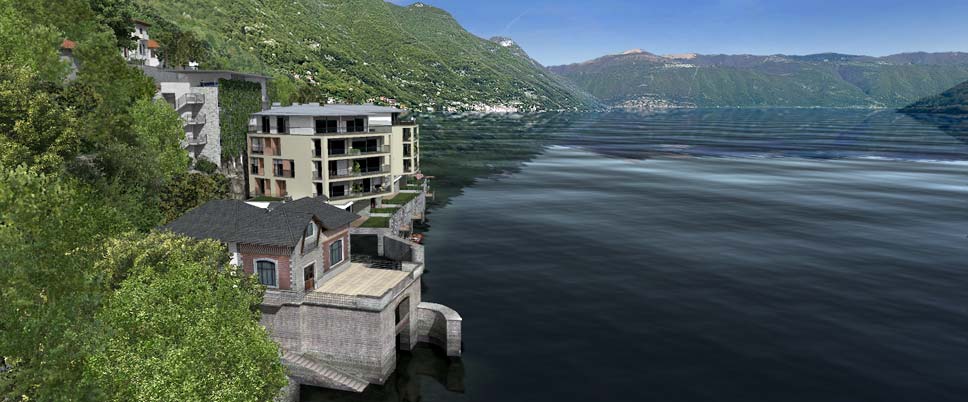A REAL PEARL OF THE COMO LAKE! UNIQUE AND EXTREMELY LUXURIOUS! Having left the car in the garage above the apartments, you leave the Regina Highway and descend towards the living units. The relationship between man and traffic changes instantly, leaving space for nature: your eyes fall upon and establish a new protagonist, the lake. When catching a first glimpse of the lake, you are still far from and higher than the water, and it is during the descent that a relationship is born between man, water, rock and greenery, which strongly characterises the location. The architectural quality guarantees that the building performs to a high level, resulting from both a careful selection of materials and research into the building technologies used in the project. The design of the building’s envelope and fixtures render its construction perfectly “contemporary” and in line with passive homes typical of sustainable architecture, with attention paid to energy consumption and reducing emissions. A building culture for contemporary homes, which combines sustainability, drastic reduction of energy costs and a perfect climatisation of the rooms. The intervention also takes care of the area in environmental terms, through the planning of green spaces, which are fundamental for the project to be a success. The planting of botanical species, starting with local varieties, is being studied, and using greenery to hide the service areas is foreseen, to leave the building as natural a backdrop as possible. READY: MAY, 2013