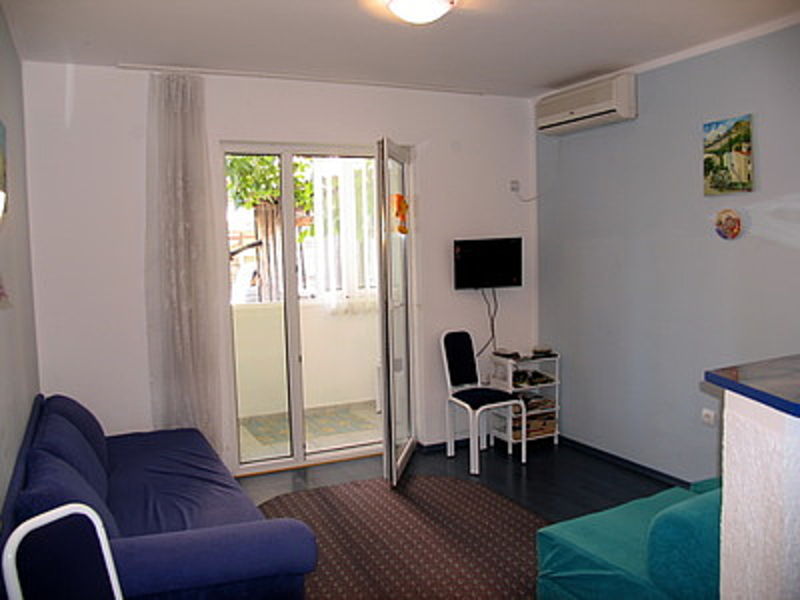The apartment is on the first floor of a house in a nice area Podkoshlyun of the Budva city. Near the house is quiet, green courtyard. To the sea - 20 minutes walk. The actual size of the apartment is 26 m2. The apartment has a large living room-studio room with kitchen area and dining room, bathroom with shower and a bright sunroom. Beautiful interior decoration. New windows, modern tile and plumbing, air conditioning. The apartment is sold with all necessary furniture and household appliances.