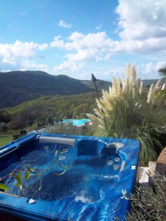 Beide Häuser sind ausgestattet mit Zentralheizung (Gas oder Holz). Verwendet wurden nur hochwertige, toskana-typische Materialien, die höchste Anforderungen an modernen Wohnkomfort erfüllen und den einzigartigen Flair dieses toskanischen Landguts unterstreichen. Alle Decken sind in der typisch toskanischen Bauweise erstellt worden, also mit sichtbaren, tragenden bis zu 30 cm dicken Holzbalken aus toskanischer Edelkastanie, den schmäleren correnti ebenfalls aus Edelkastanie und Terracottaplatten. Häuser und Bar wurden zwischen 1996 und 2000 komplett kernsaniert umgebaut und renoviert.