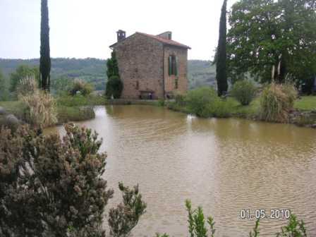 In 200 m Entfernung vom Haupthaus, 70 m² auf drei Ebenen, 2 Schlafzimmer, 1 Wohnküche (Kastanienholz, maßgefertigte Schreinerküche) mit großem offenen Kamin, Badezimmer mit Duschgrotte, alle Böden und Bäder in Marmor Bianco di Carrara; 500 m² Basaltschiefer-Terrasse um das Haus. Hinter dem Haus 300 m² Fischteich.