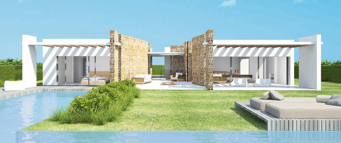 33 роскошных и гармоничных вилл с собственными дорогами контролируются активными и пассивными системами безопасности . Архитектура вилл включает в себя черты традиционного дома на Ибице и передовые технологии. В коттеджном поселке имеется все необходимое для комфортного проживания – спа, фитнес, садовники, охрана, консьерж, услуги химчистки, горничные.