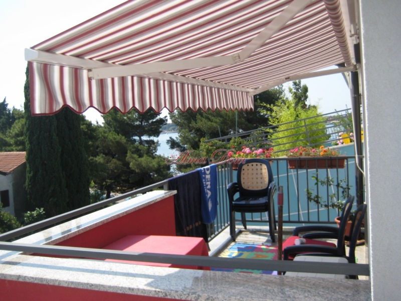 Квартира состоит из коридора, гостиной с обеденной зоной, кухни с кладовой, спальной комнаты, ванной комнаты с туалетом и террасы с видом на море.