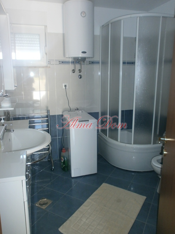 Квартира расположена на первом этаже нового, жилого дома и состоит из коридора, двух спален, ванной, гостиной, кухни, двух больших террас и сада площадью 100 м.кв.