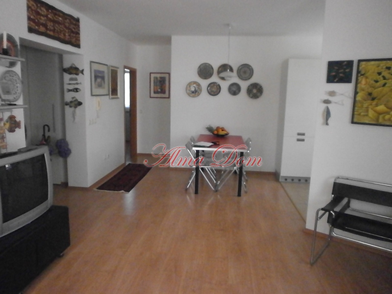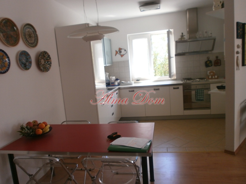 Продается квартира на первом этаже жилого здания в Ровине площадью 75 м2. Квартира состоит из двух спальных комнат, ванной комнаты, небольшого туалета, прихожей, где находится встроенный шкаф, кухня с обеденной зоной.