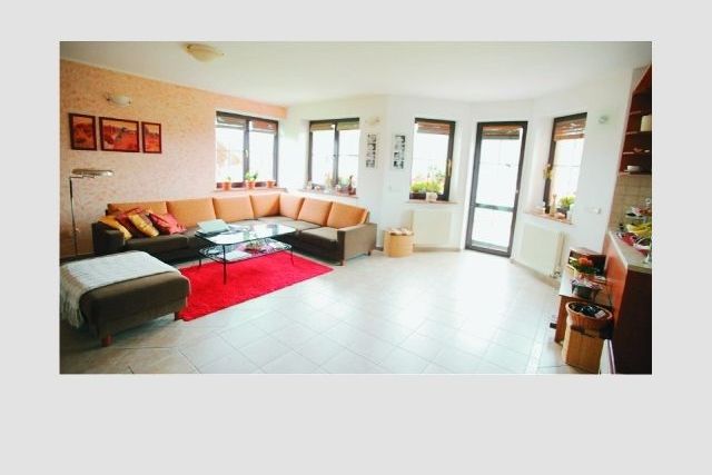 На первом этаже находится холл, детская комната, ванная гостиная с камином и выходом на террасу, полностью оборудованная кухня. На втором этаже расположены 3 спальни, гардеробная и ванная комната с туалетом. Просторные, светлые комнаты. Большой, благоустроенный палисадник с беседкой.