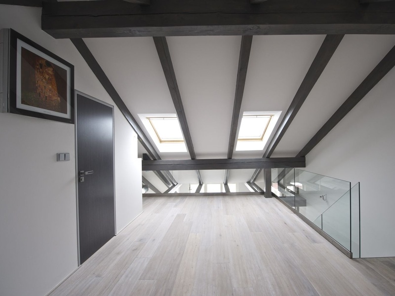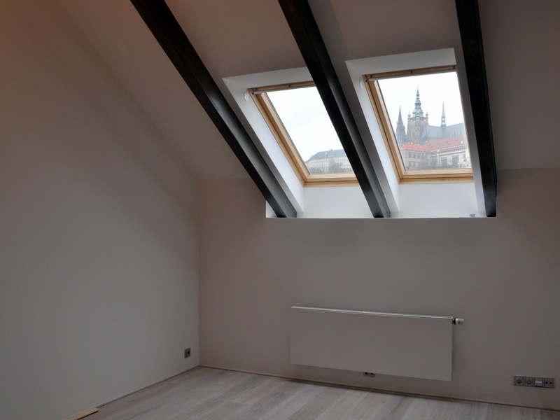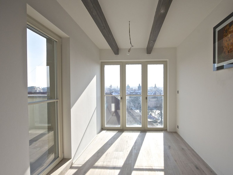 Unique loft apartment with superb views of the city through large French windows, with terrace and balcony on the top floor of a fully renovated Neo-Renaissance building from 1854 in Malá Strana. The apartment offers a spacious living room with kitchen and dining area, leading to the terrace through large French windows, large gallery (suitable for office), 2 bedrooms, 2 bathrooms, guest toilet and an entrance hall with built-in wardrobe. The apartment is finished in a higher standard, air conditioning, fully equipped kitchen with high-end Miele appliances, Villeroy & Boch bathroom fixtures, alarm. Storage cellar in the basement is also included. Interior 118.5 m2, terrace and balcony 13.7 m2.
