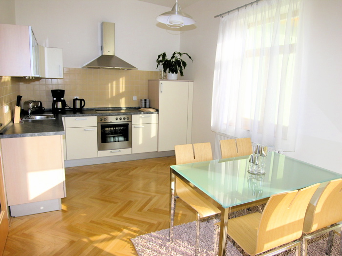 Светлые и просторные апартаменты на последнем этаже 5-этажного дома. Полностью отреставрированное здание начала 20-го века с лифтом расположено недалеко от парка, в нескольких минутах ходьбы от Вацлавской площади. В квартире есть гостиная с выходом на террасу, откуда открывается вид на южную сторону (23,9 м2), полностью оборудованная кухня, столовая, 3 спальни, 2 ванные комнаты, гардероб, подсобное помещение и туалет для гостей. А также, паркетные полы, спутниковая связь, кондиционер, домофон, центральное газовое отопление. Цена также включает 1 парковочное место в гараже.