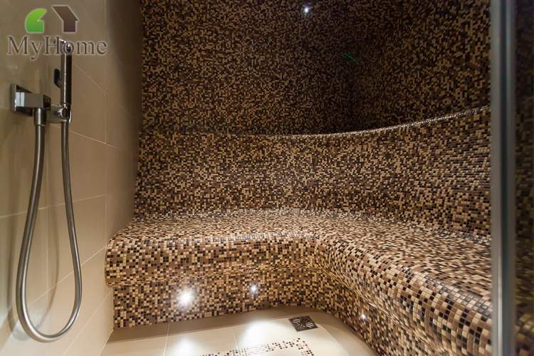Each room is equipped with a built-in music system, with loudspeakers and a well-designed lighting solution. The Italian “smart home” solution has been installed in the house.