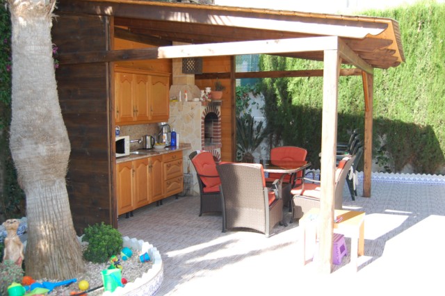 Шикарная вилла в престижной урбанизации Сьюдад Кесада. Дом с жилой площадью в 160 кв.метров, расположен на участке в 600кв. метров, с 3 спальнями, 3 ванными комнатами, двумя просторными терассами,одна из которых в виде тренажерного зала. Летняя кухня, частный бассейн, въезд для машины.Дом полностью меблирован и оснащен электробытовой техникой. При желании можно проиобрести без мебели