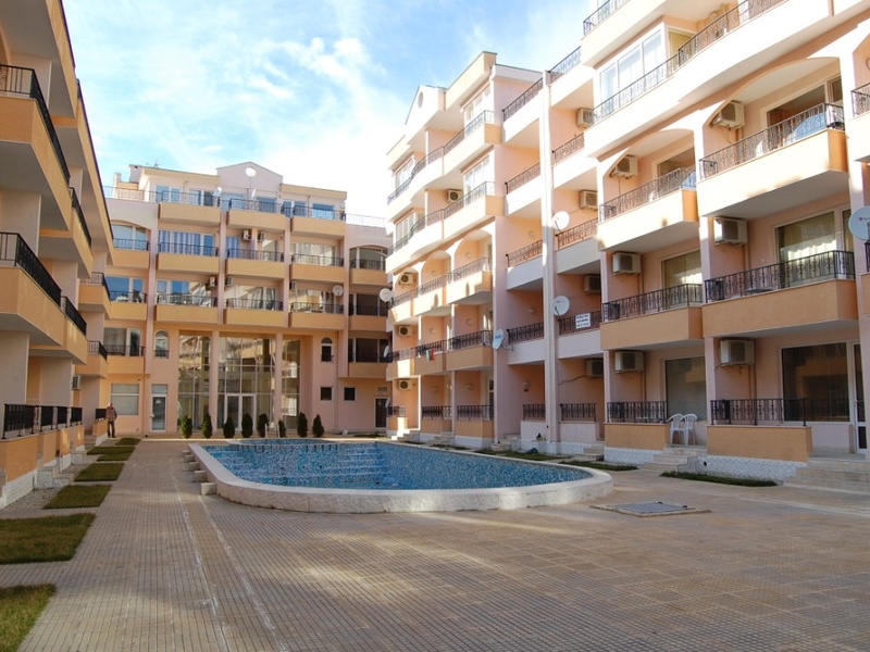 Представляем Вашему вниманию отличную студию с мебелью площадью 28 кв. м, расположенную на 2-этаже в комплексе в 500метрах от моря в на Солнечном берегу. Студия предлагается с полной меблировкой Из окон открывается вид на бассейн. Подходит для круглогодичного проживания: в районе круглогодичные магазины, банки, аптека, поликлиника. Комплекс находится в западной части курорта, в 500 м от побережья Черного моря, рядом с аквапарком. Имеется бассейн, парковка. Планировка: прихожая, гостиная с кухней, балкон, санузел с душ-кабиной. Такса за обслуживание - 8 Евро/кв.м. в год.