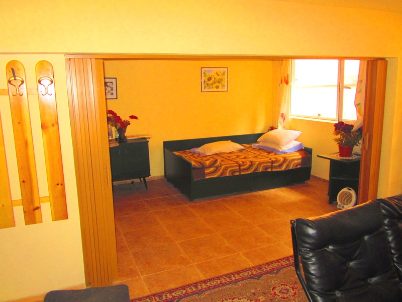 Двухкомнатная квартира на партерном этаже, состоящая из двух совмещенных комнат, туалета и двора. Площадь – 46 кв. м. Продается с мебелью. Квартира находится в жилом доме в подножии гор, недалеко от моря, в тихом и спокойном месте – самый новый жилой квартала Святого Власа „Русалка”. Нет годовых сборов обслуживания.