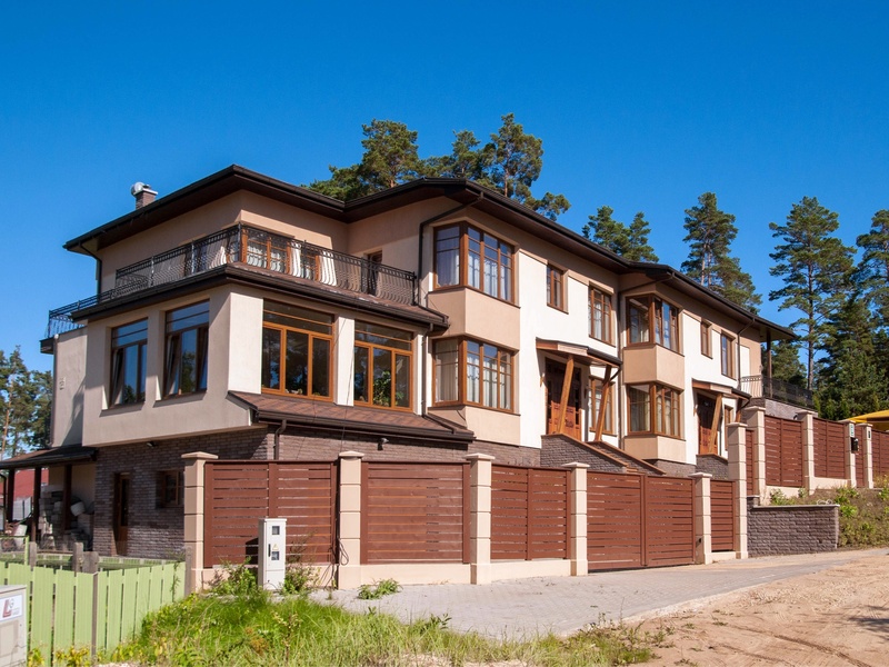 Продаётся элитный загородный дом площадью дома 1200 кв. м и участком земли 2800 кв. м Дом-близнец из двух частей. Каждая часть площадью 600 кв. м. Есть возможность перепланировки в один дом Идеально подходит для большой семьи, которая хочет жить вместе Дом находится в элитном пригороде Риге, расположенном на берегу озера Судоходное озеро Балтезерс имеет водное сообщение с Рижским заливом и Юрмалой Система автономного отопления (работает на газу), собственное водоснабжение и канализация Расстояние до границы Риги -2 км, до моря -15 км В 10-ти километрах расположен частный аэродром Здание имеет четырнадцать комнат, два гаража для четырёх машин, зал отдыха с выходом во двор, восемь санузлов, два джакузи, три камина, баня, бассейн, спортзал